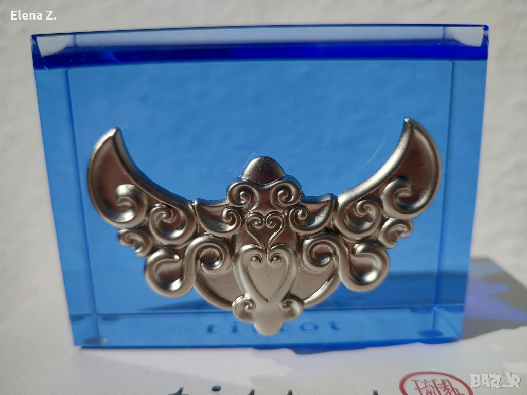 Изработена от тежко кристално кобалтово-синьо стъкло, с уникална прозрачност, и с добавен орнамент в типично китайски стил. Орнаментът е знак за благоденствие, смелост за постигане на целите, и късмет в начинанията.