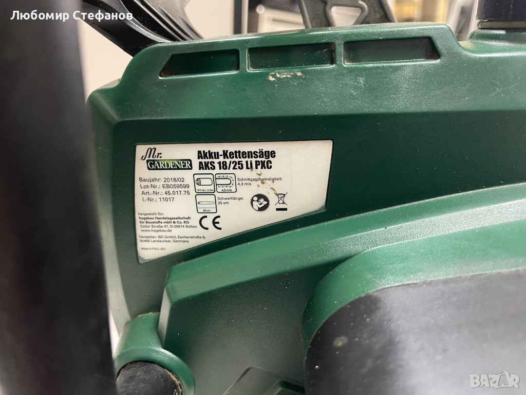 Акумулаторен верижен трион Mr. Gardener 18/25 Li PXC 25cm , снимка 1 - Други инструменти - 53679966 Акумулаторен верижен трион Mr. Gardener 18/25 Li PXC 25cm , снимка 2 - Други инструменти - 53679966 Акумулаторен верижен трион Mr. Gardener 18/25 Li PXC 25cm , снимка 3 - Други инструменти - 53679966 Акумулаторен верижен трион Mr. Gardener 18/25 Li PXC 25cm , снимка 4 - Други инструменти - 53679966 Акумулаторен верижен трион Mr. Gardener 18/25 Li PXC 25cm , снимка 5 - Други инструменти - 53679966 1/5