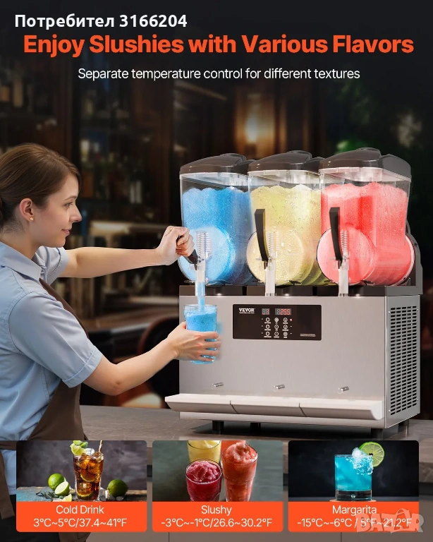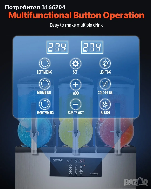 - Отделно управление за всеки резервоар + дигитален дисплей, два режима (скрежина и студена напитка).
