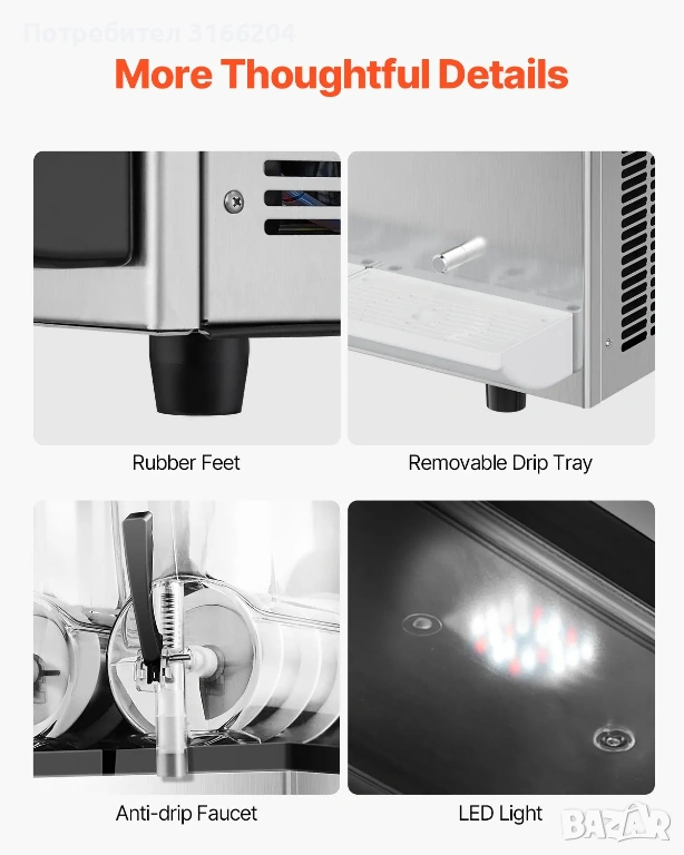 Висока производителност, подходящ за заведения, барове, кафенета, детски центрове, молове, паркове и места с голям поток от хора.