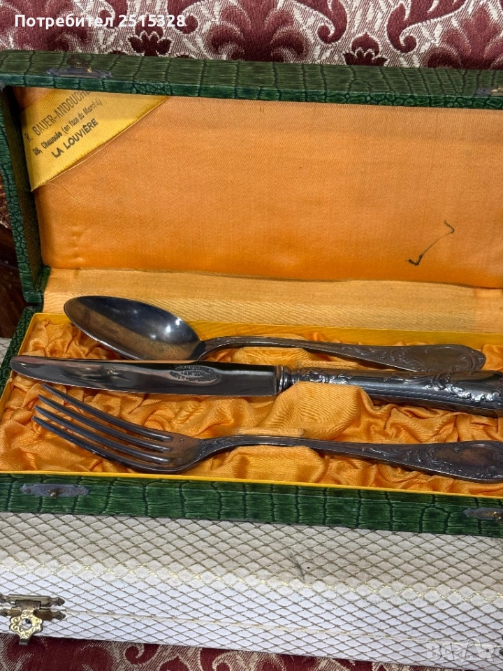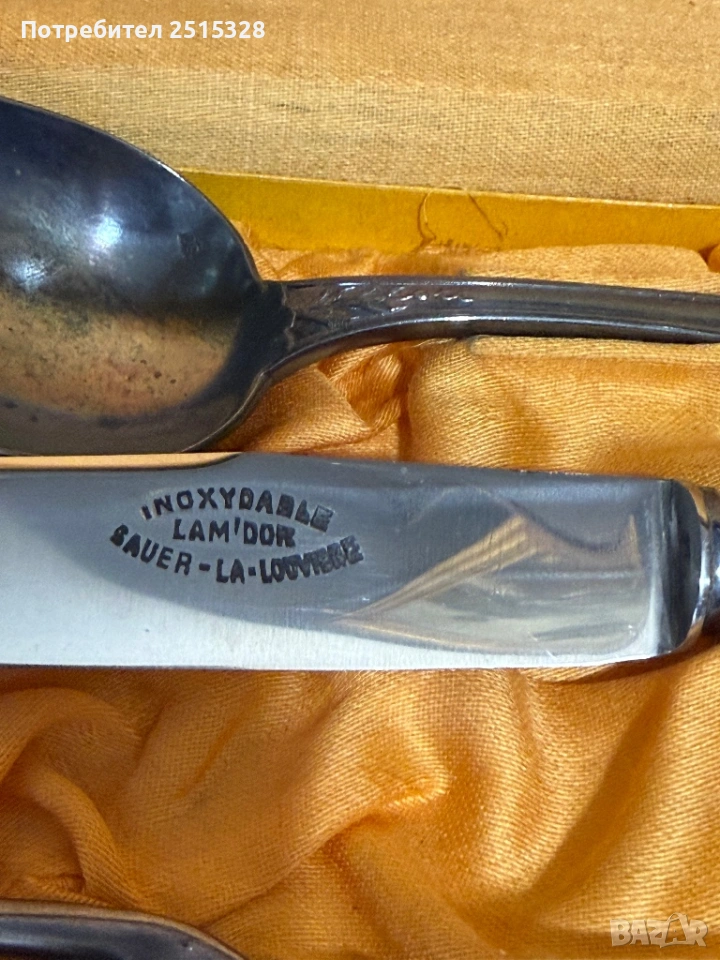 Този комплект е висококачествен винтидж прибор за хранене на марката Bauer-Andouche, произведен в Ла Лувиер, Белгия.