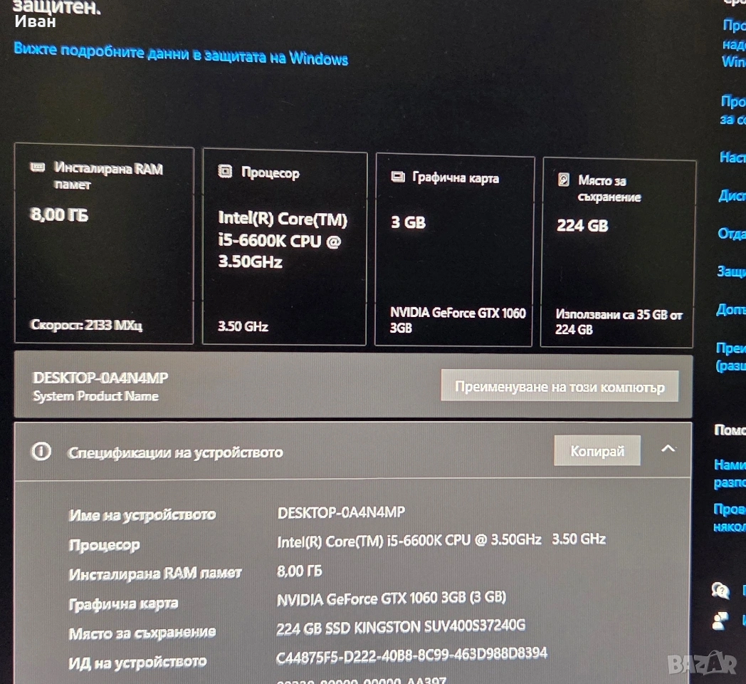 Гейминг i5 6600k / GTX 1060 / 8GB DDR4 → Обява 53680149