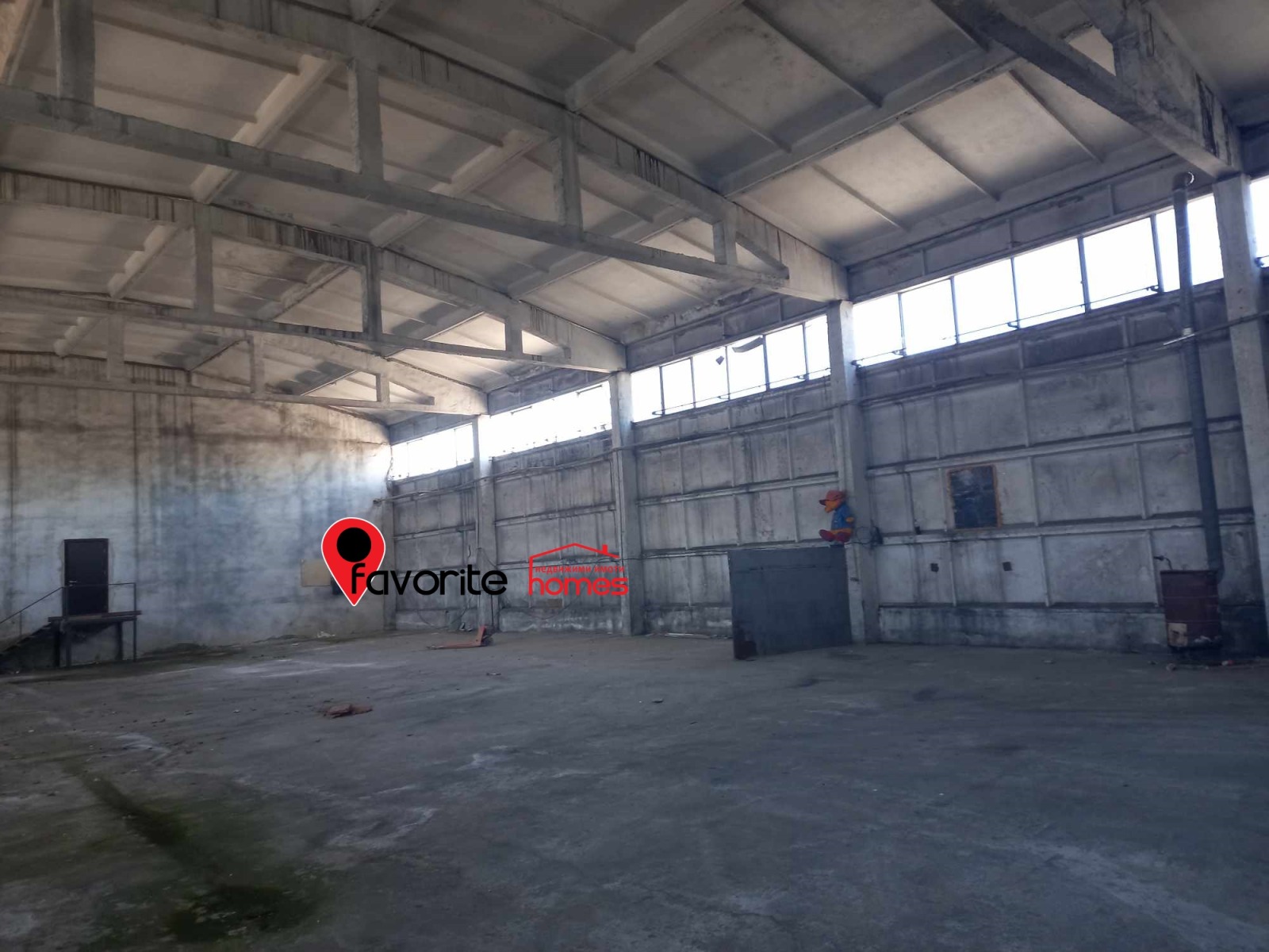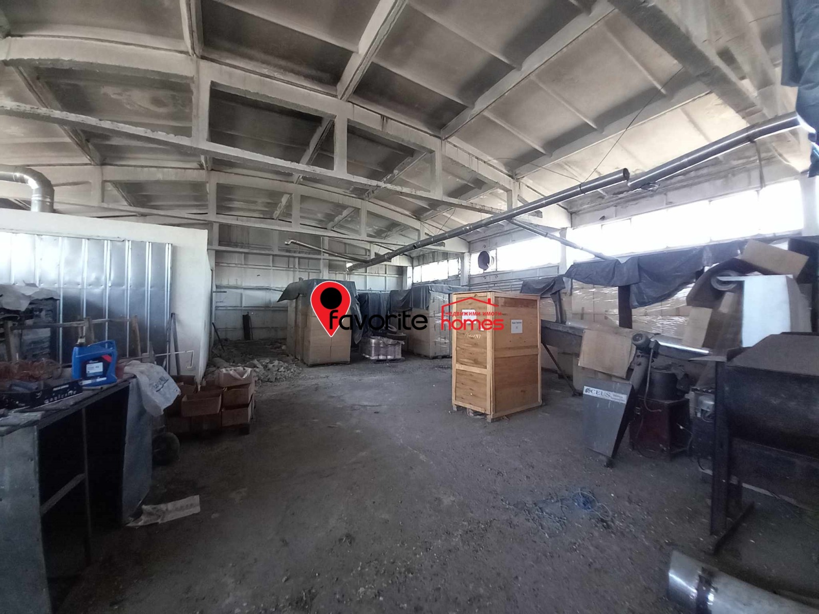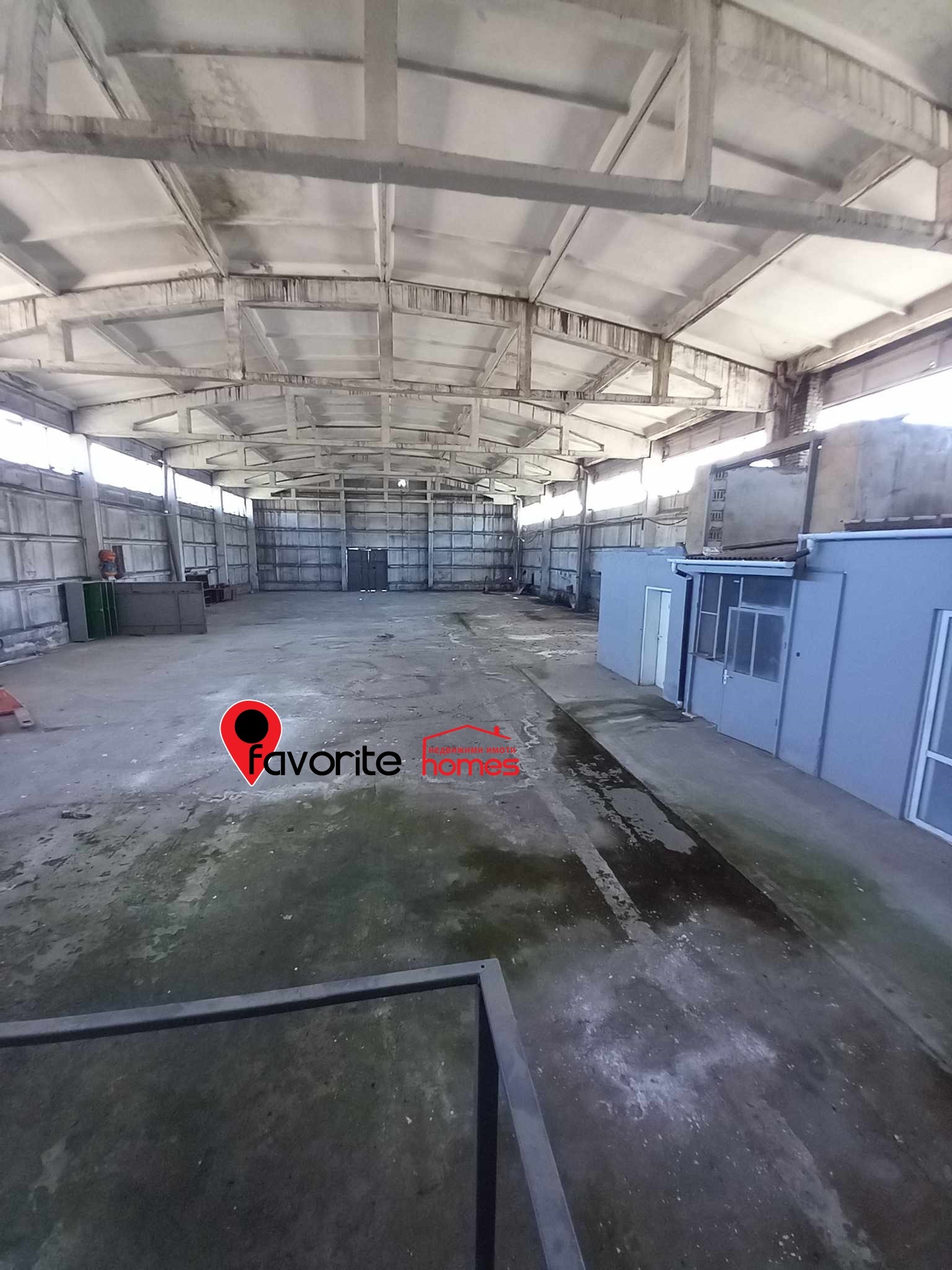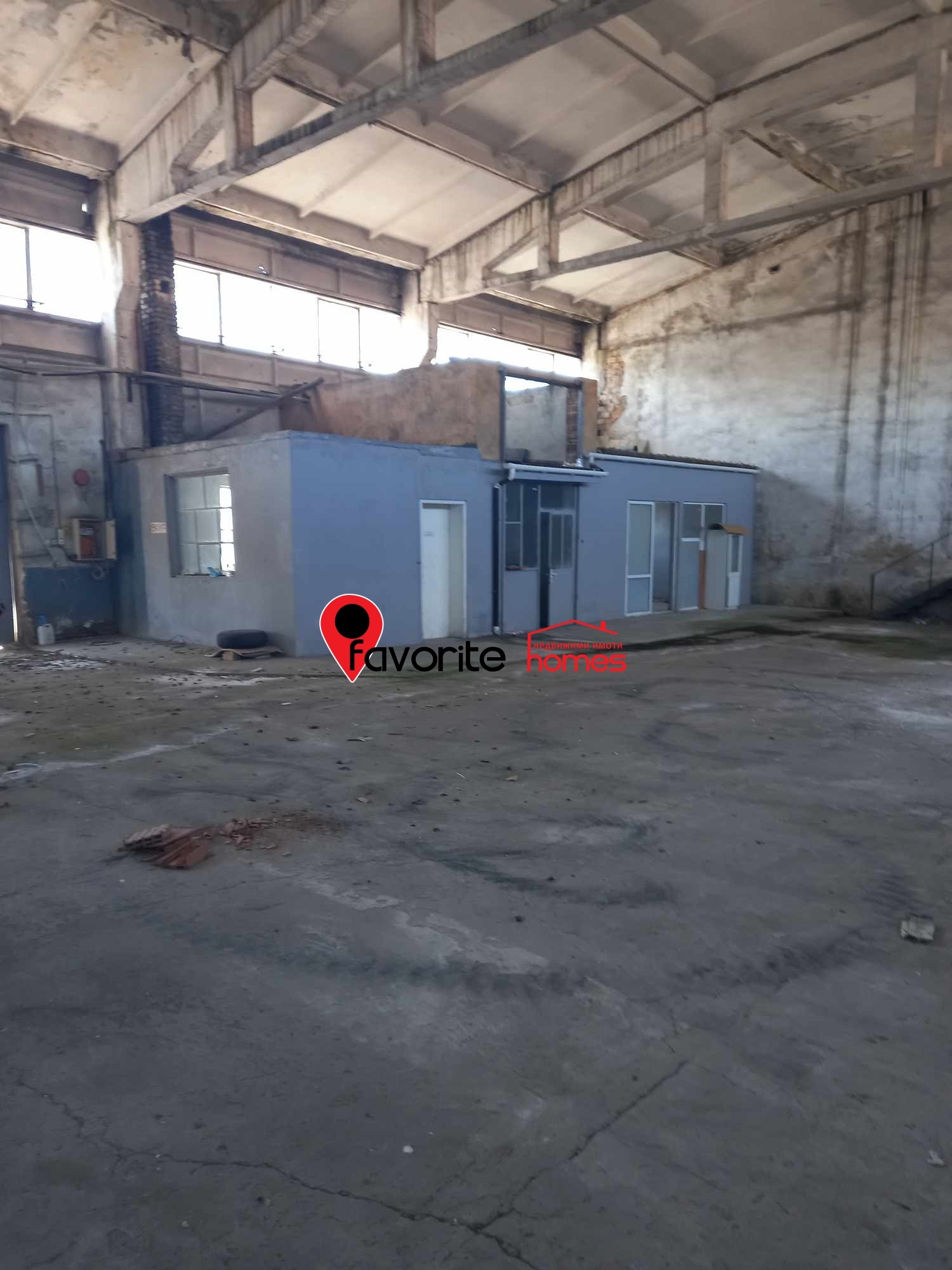 Представлява: Парцел от 3800 кв.м., който е асфалтиран с две големи ПРОМИШЛЕНИ помещения , свързани помежду си, с обща площ от 1600 кв.м . Строени 70те години, сглобяема стоманобетонна конструкция, под-бетон. Изградени съблекални, санитарен възел за работници , както и помещения за администрация. В парцела са построени и две големи помещения за складове. С изградени комуникации, ток, вода, път с трайна настилка, Дворът е бетониран и о. Базата е разположена в голям собствен двор с парк, площадка за камиони и паркинг. Помещенията са подходящи за всякакъв вид дейности.