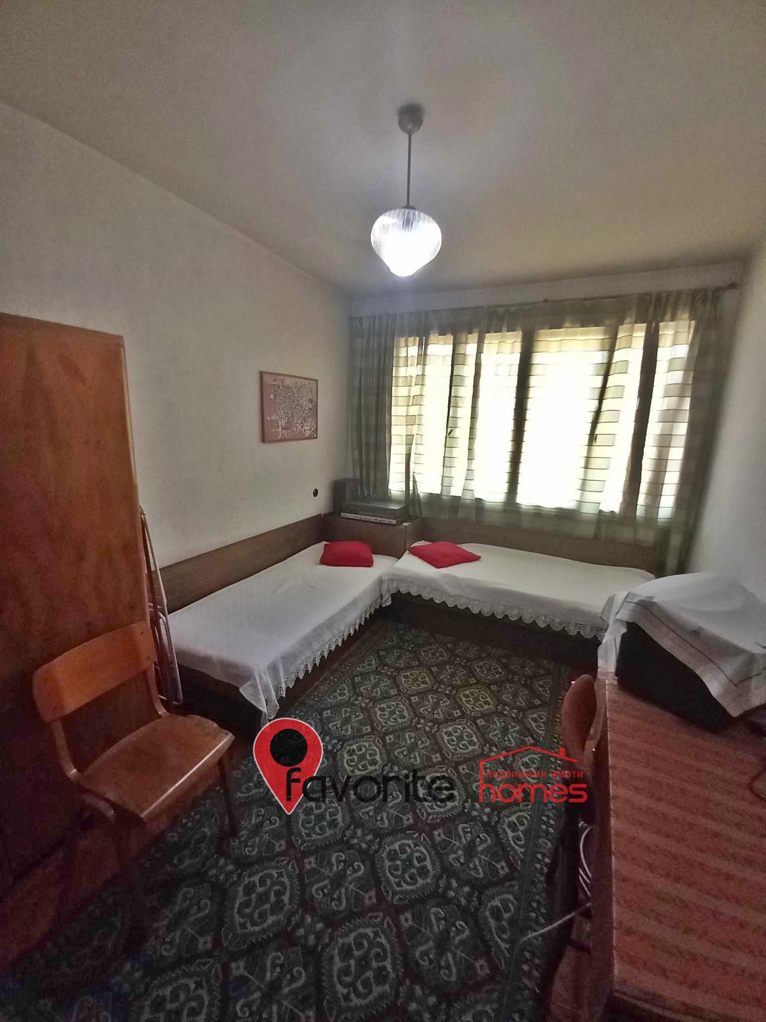 Агенция ФАВОРИТ предлага за продажба ЧЕТИРИСТАЕН , ТУХЛЕН апартамент находящ се в ЦЕНТРАЛНАТА ЧАСТ на гр.Шумен, по ул.Съединение , в близост до Съда , ПолициЯ , Средно училище Панайот Волов . Жилището е разположено на 4 ти етаж , с площ от 100 кв. м. , изба - 13кв.м. и таван -13 кв.м . Изложение Юг/Север. Състои се от: коридор, хол, трапезария с кухненски бокс и тераса, 2 спални , всички стаи с излаз на тераси, баня, тоалет! Възможно е преустройство на дневен тракт в трета спалня. Продава се обзаведен и с електроуреди- климатик, пералня, хладилник, бойлер...