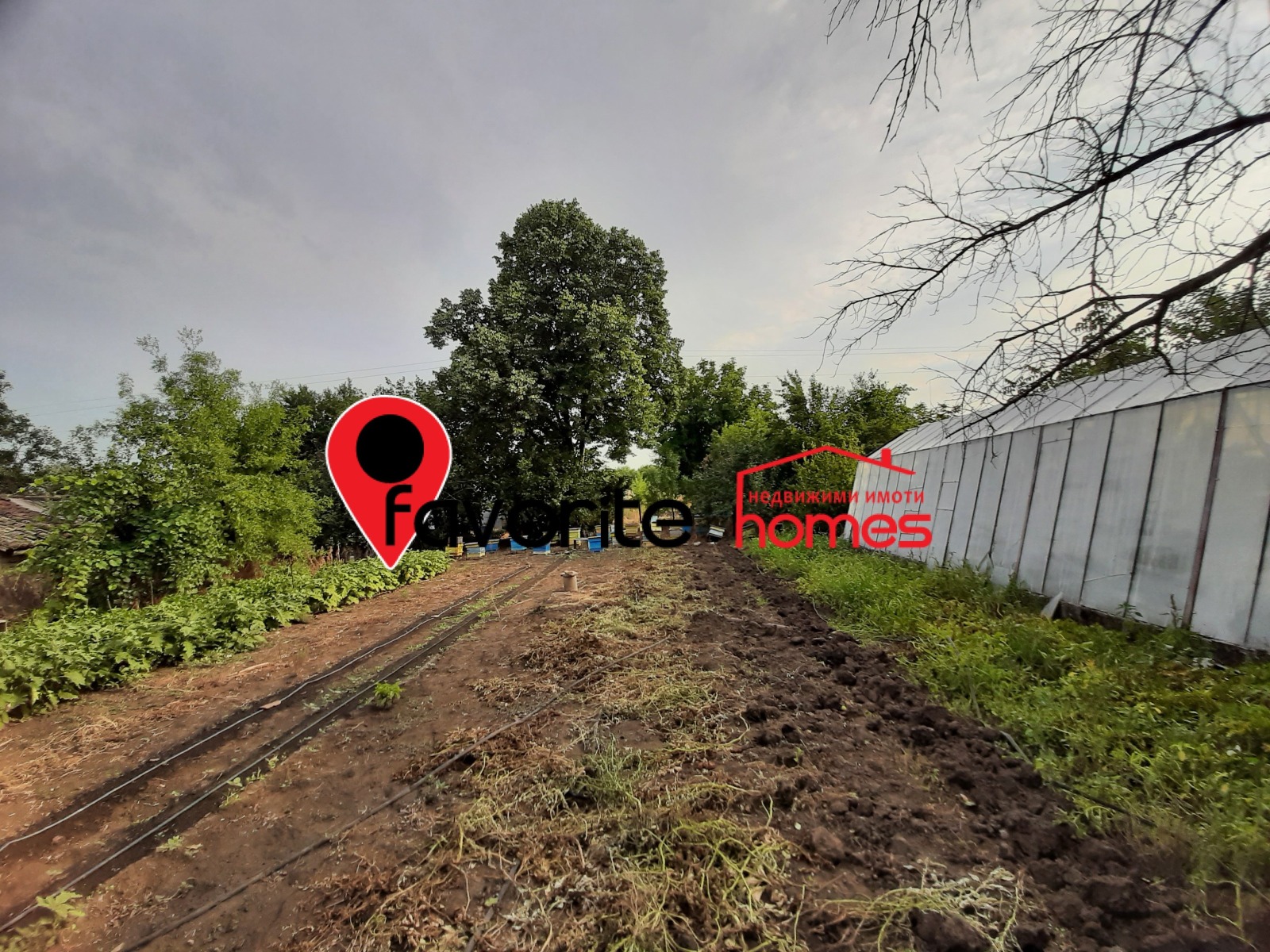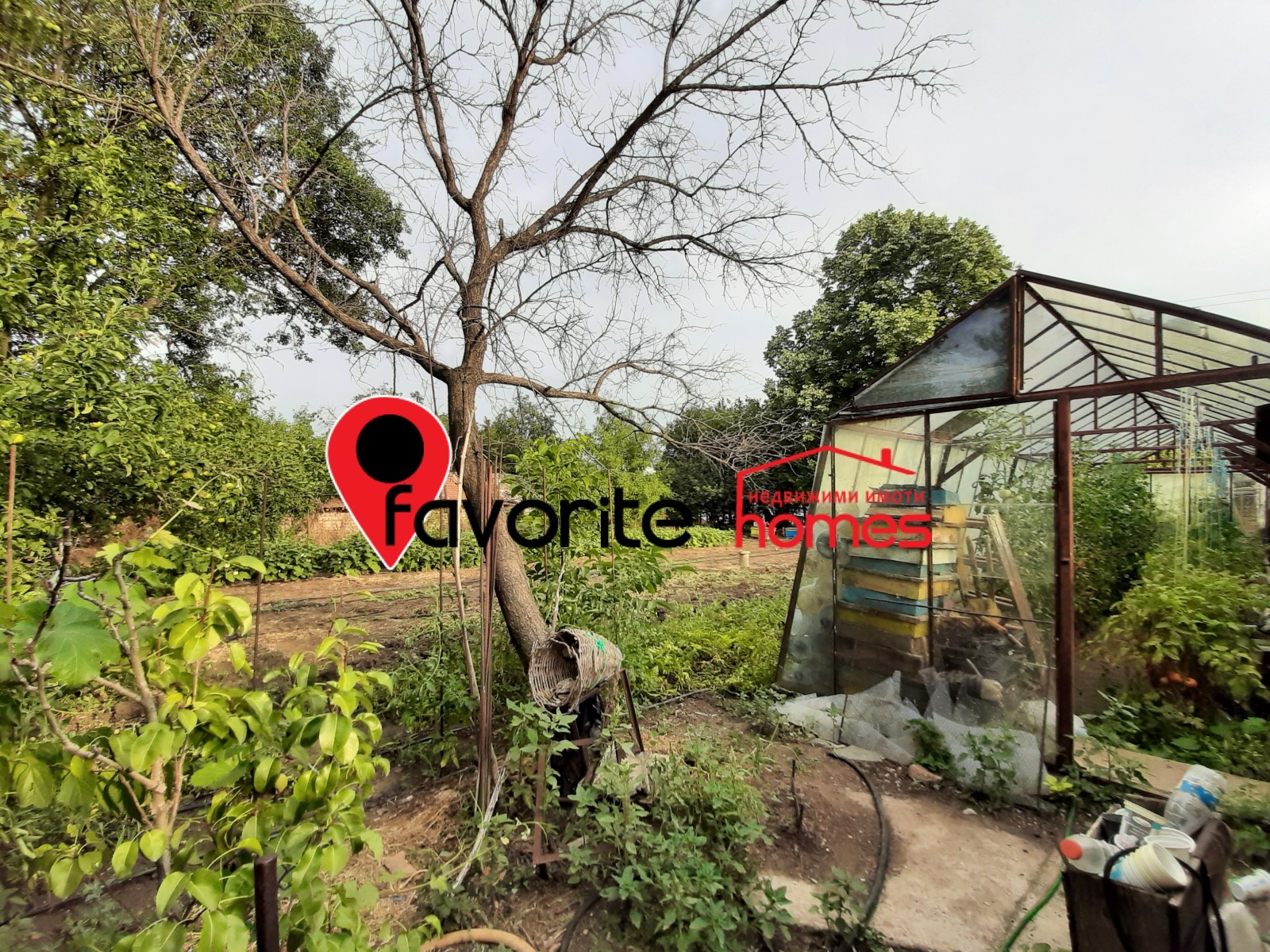В имота са изградени още : ТУХЛЕН ГАРАЖ с площ 30кв.м. с канал, СТЪКЛЕНА ОРАНЖЕРИЯ с метална конструкция - 50 кв.м., КЛАДЕНЕЦ и поливна инсталация на целия двор.