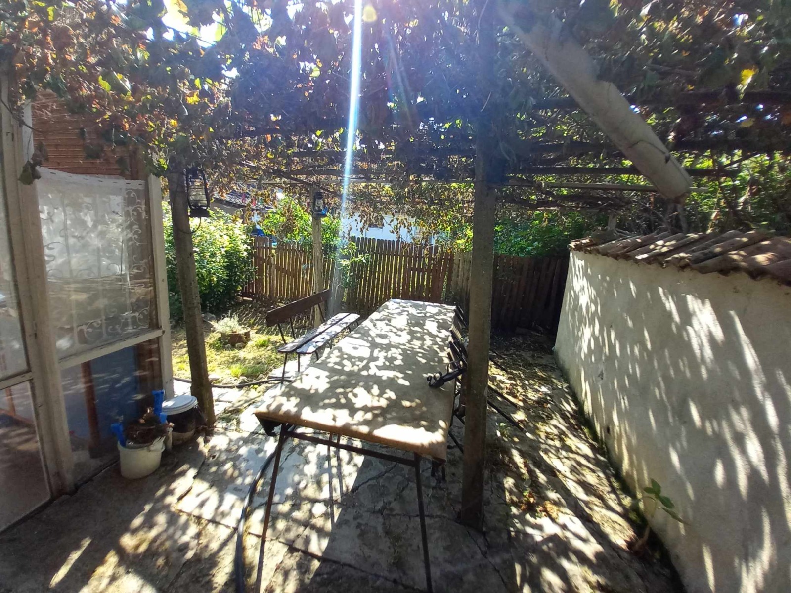 -Просторен двор с много потенциал! Външна беседка, зимна градина, парник . Добре подържан двор!