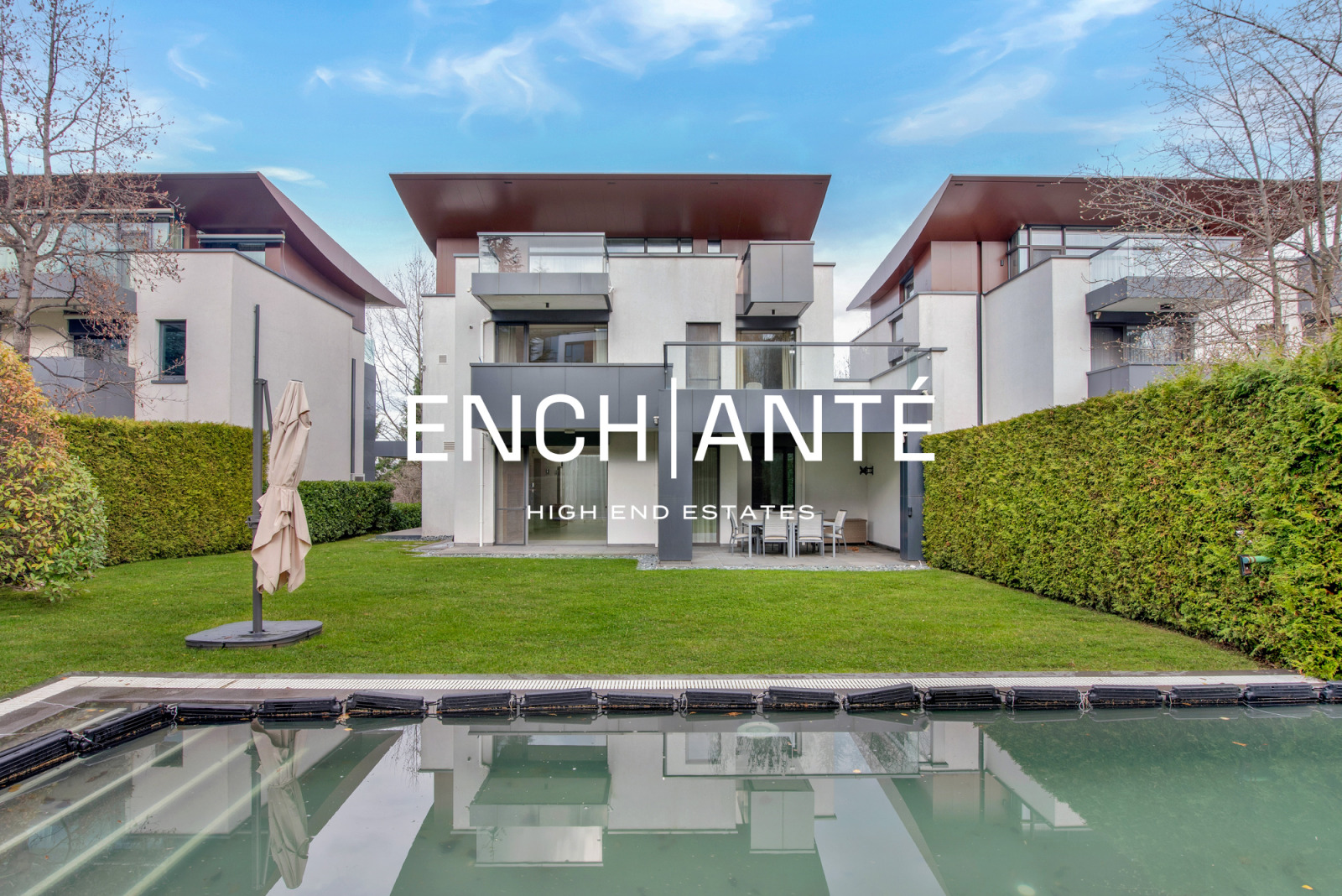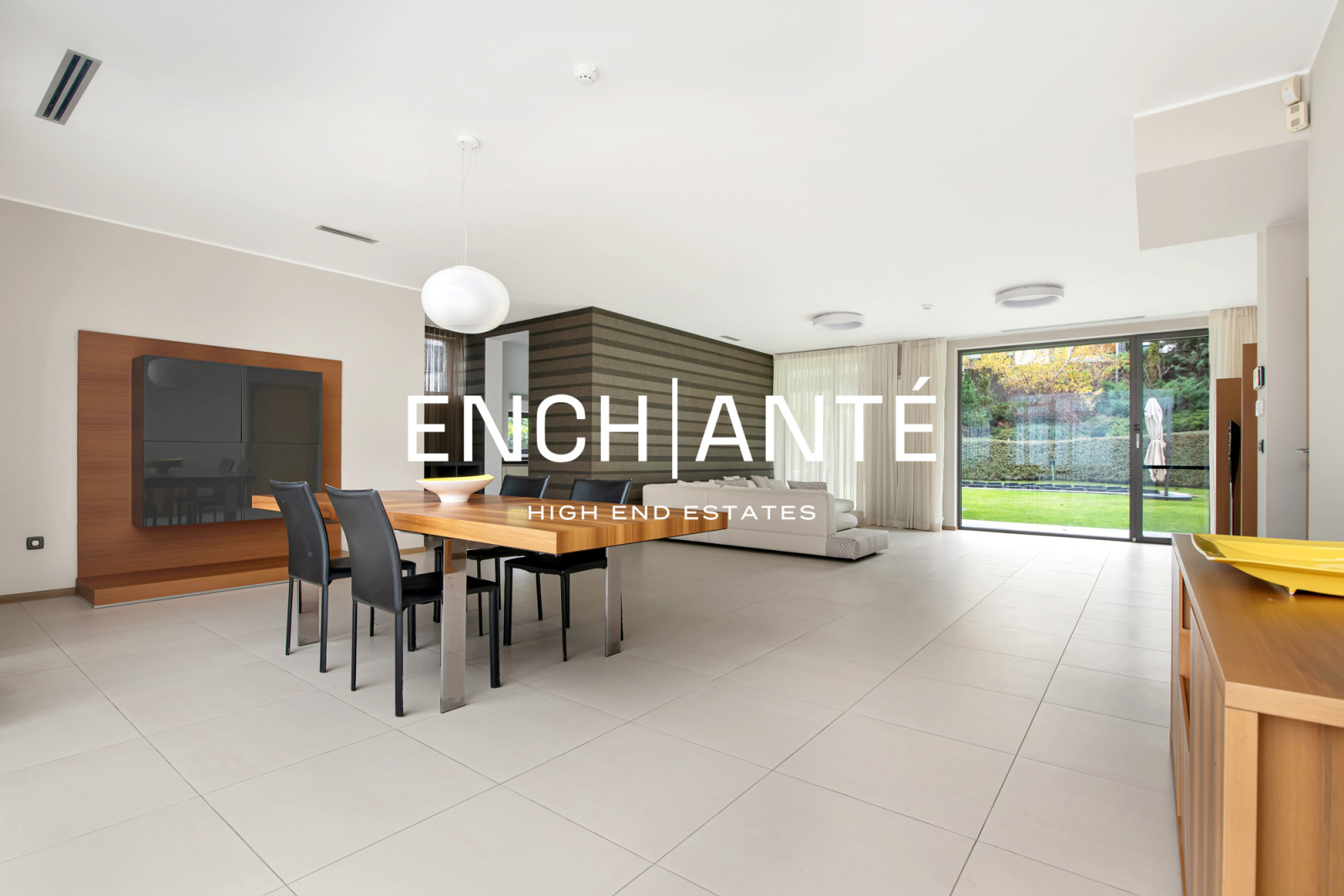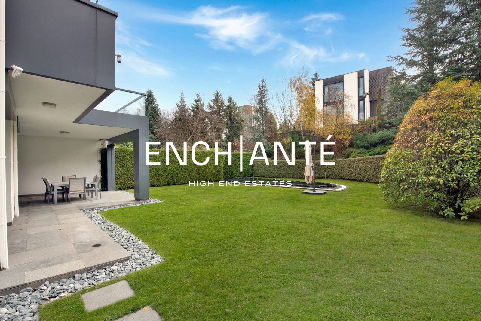ENCHANTÉ PROPERTIES представя изключителен имот, разположен в една от най-престижните локации на София в подножието на планина Витоша, заобиколен изцяло от нови и висококачествени еднофамилни къщи. Имотът се намира в елитен затворен комплекс с денонощна охрана и постоянно видеонаблюдение, осигуряващи максимална сигурност и спокойствие.