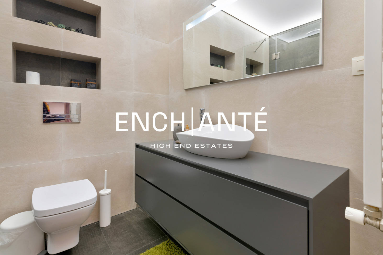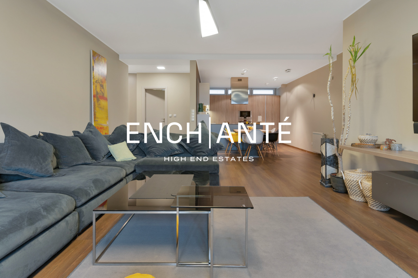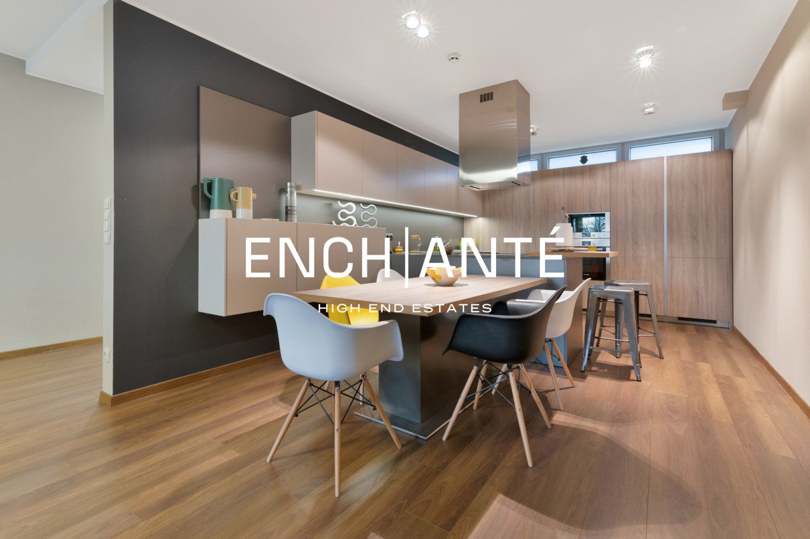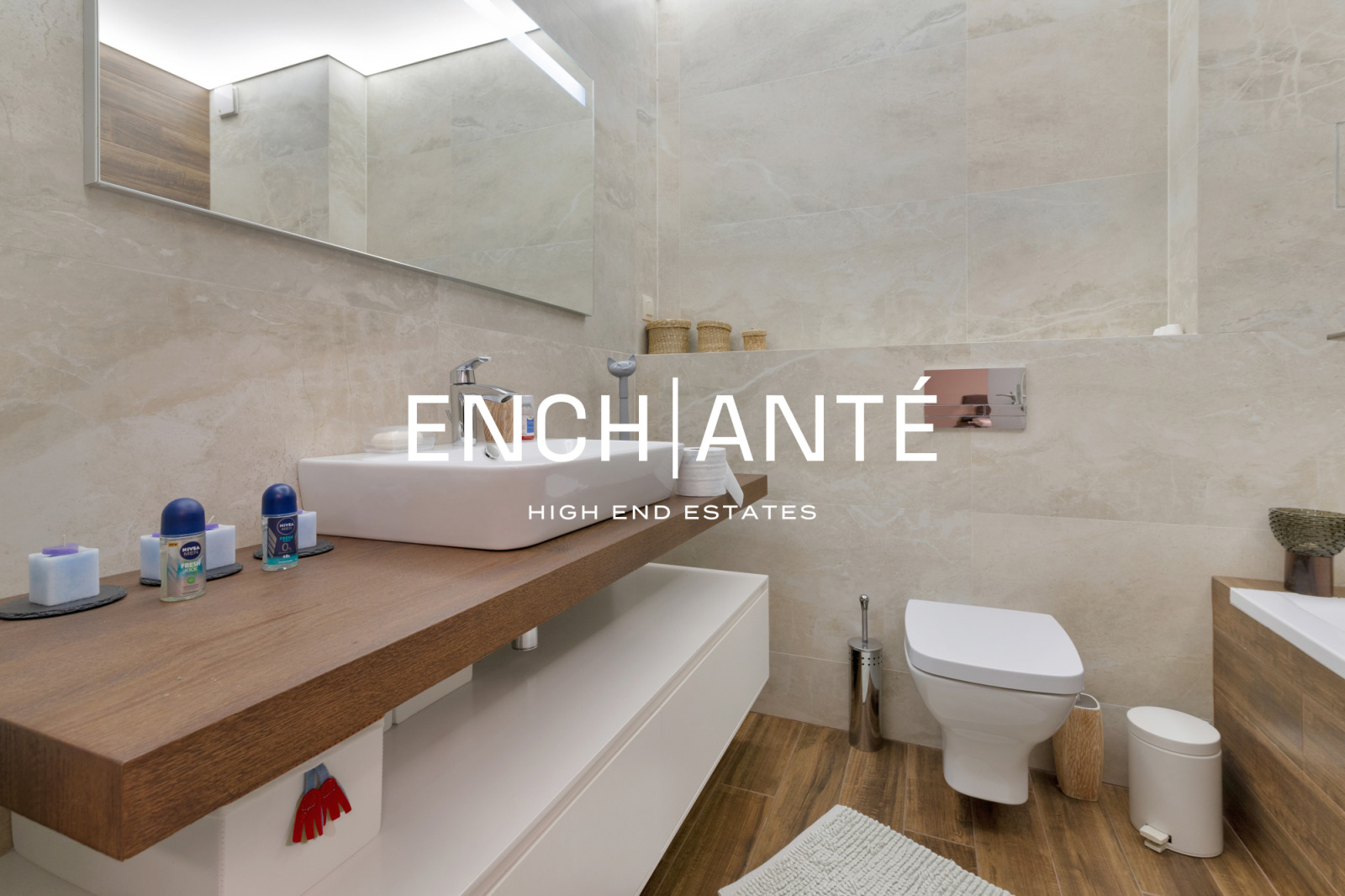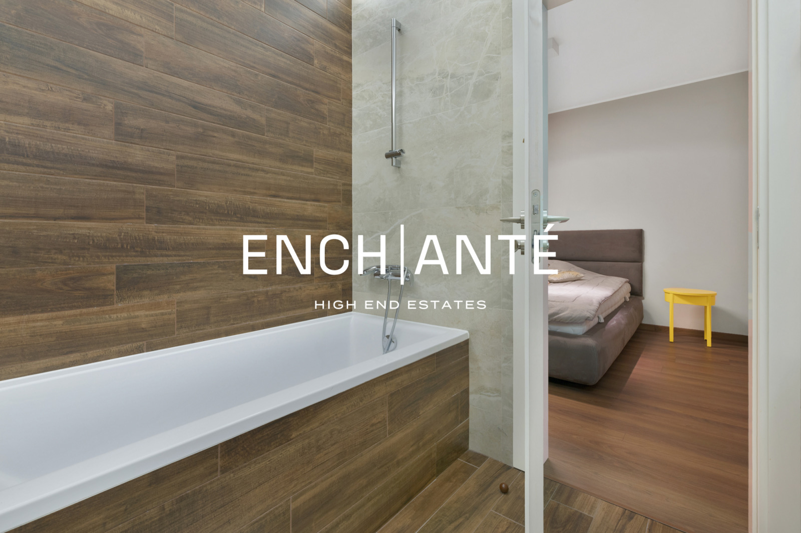 Апартаментът е изпълнен с артистичен усет и внимание към детайла, като интериорът съчетава характер, индивидуалност и усещане за уют. Използвани са висококачествени материали, мебели по поръчка и премиум електроуреди, които допълват цялостната концепция и осигуряват комфорт и функционалност.
