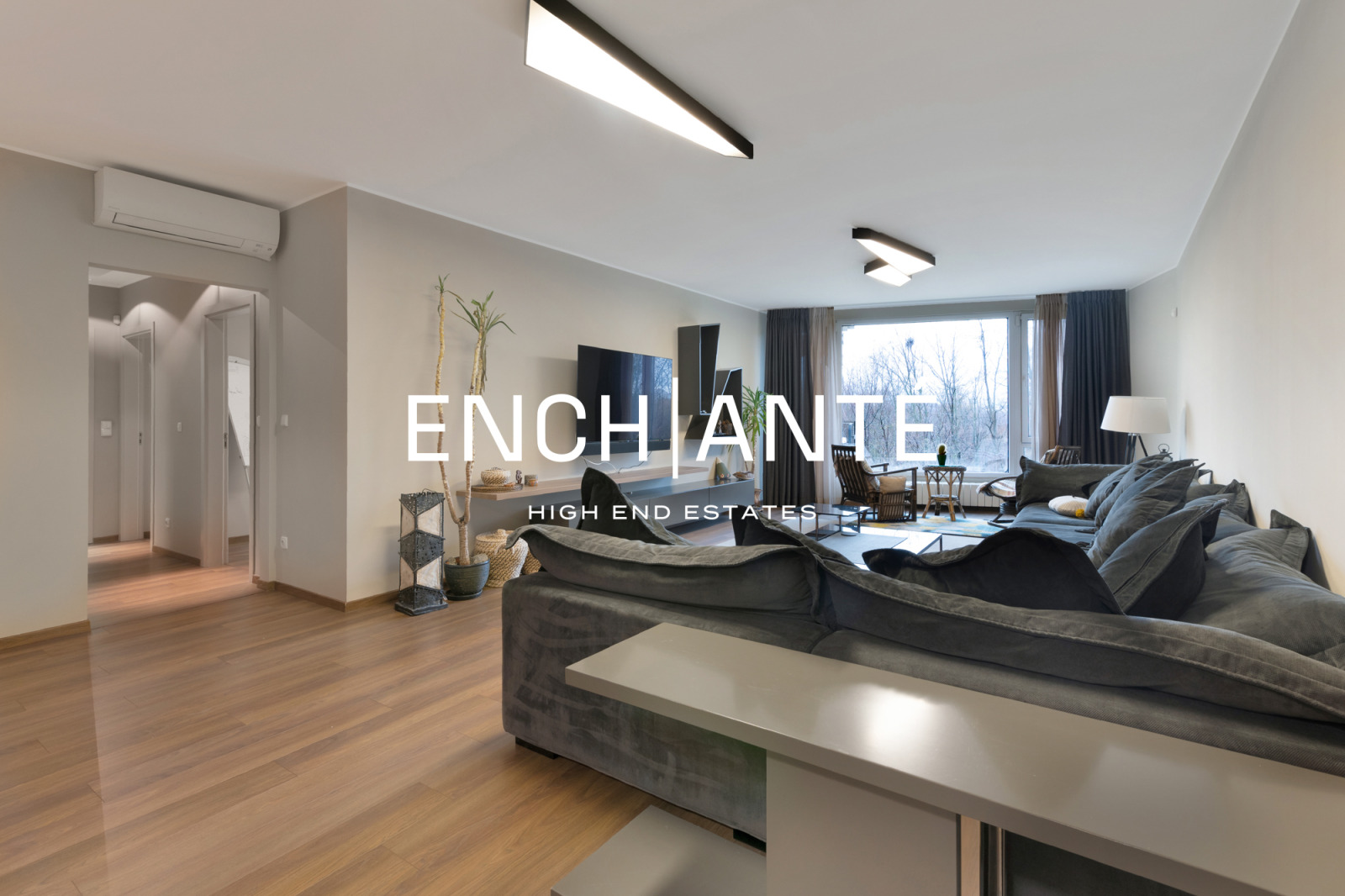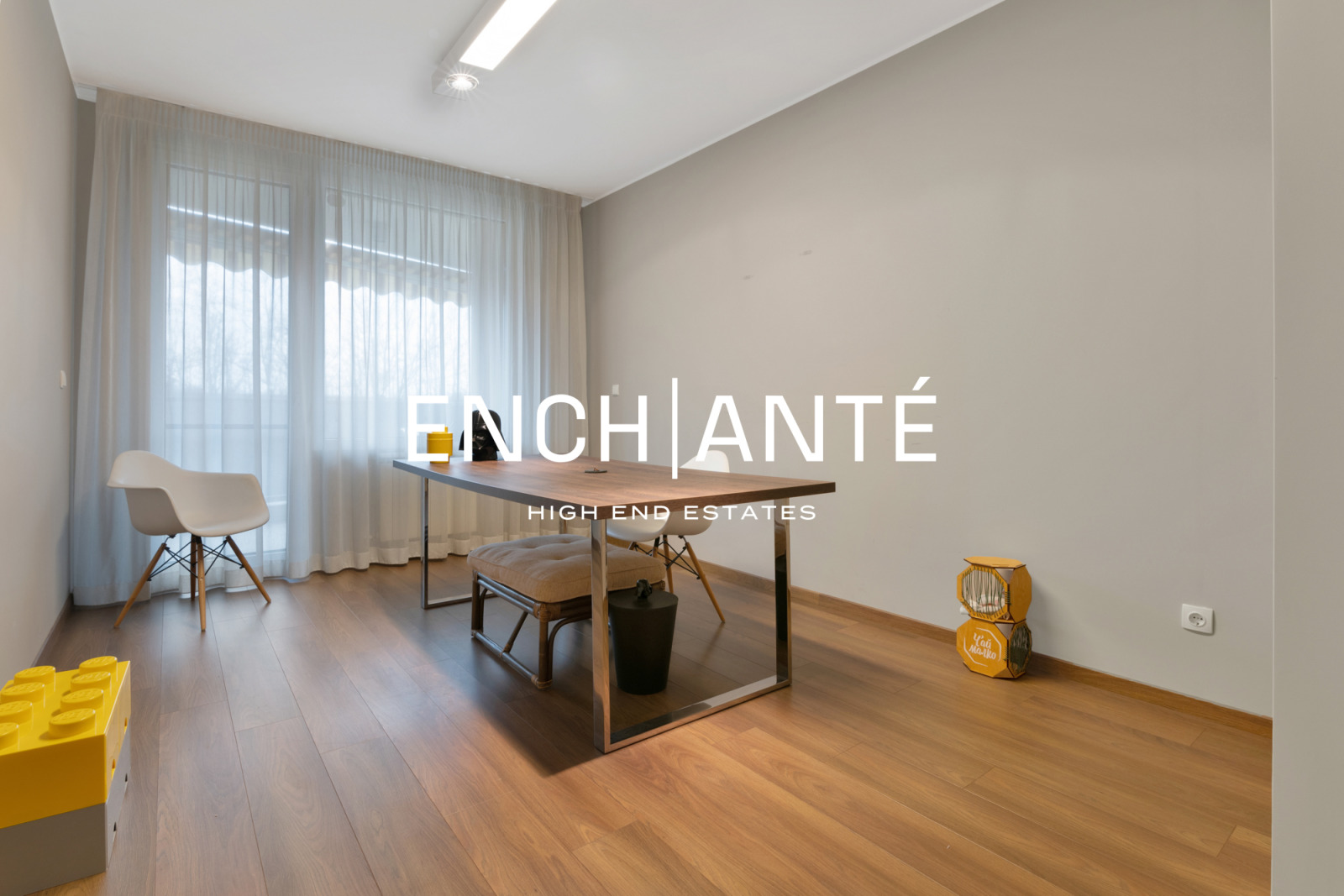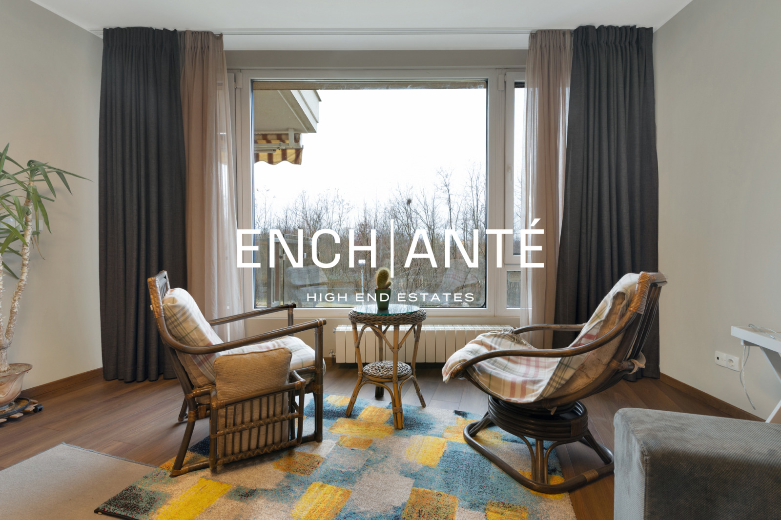 ENCHANTÉ PROPERTIES представя напълно обзаведен артистичен апартамент, разположен в сграда от затворен тип в жилищен комплекс Панорама 2 . Имотът е с изглед към вътрешния двор на комплекса и южно изложение, което осигурява обилна естествена светлина и красива гледка към планина Витоша.