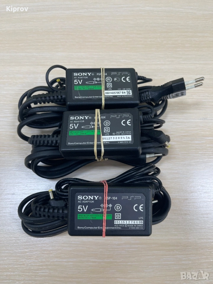 Продавам 3 броя оригинални захранвания Sony PSP-104, предназначени за PlayStation Portable (PSP). Всички са оригинални, изправни и работят без проблем.