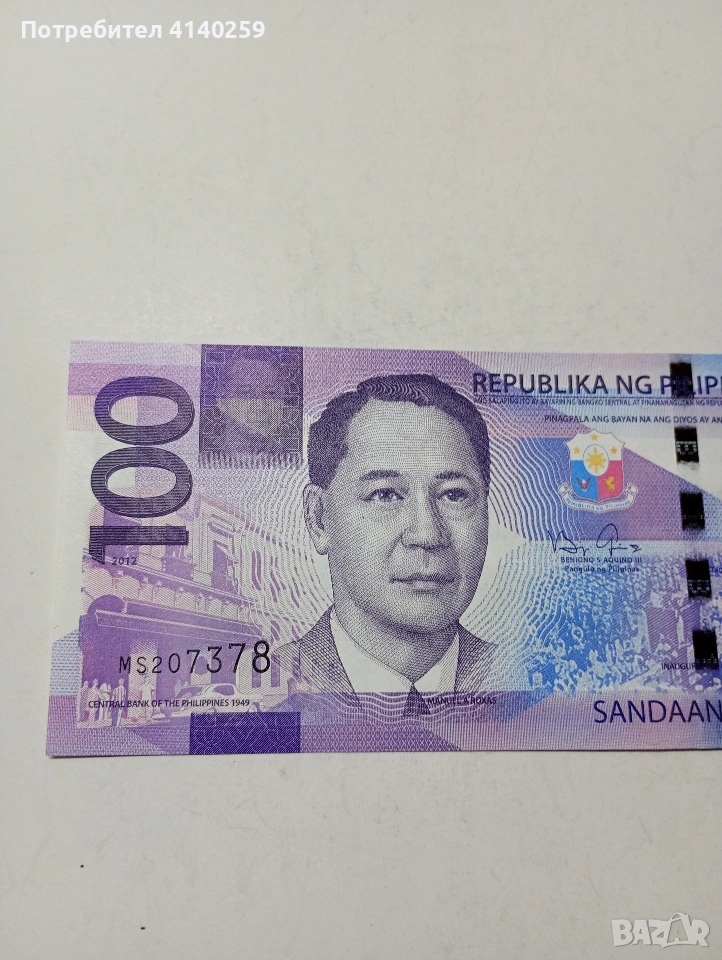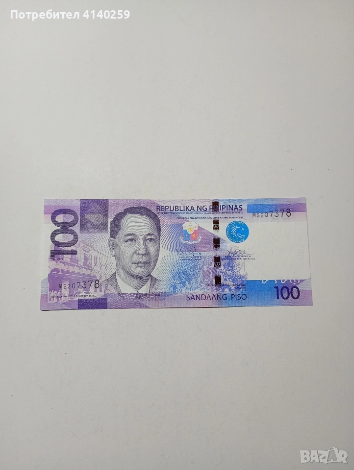 ФИЛИПИНИ БАНКНОТА 100 ПЕСОС 2012 Г СЪСТОЯНИЕ НОВО ПОЛУЧАВАТЕ СНИМАНАТА БАНКНОТА РАЗГЛЕДАЙТЕ ДРУГИТЕ МИ ОБЯВИ ДА КОМБИНИРАТЕ ДОСТАВКА ЕКОНТ ЗА ВАРНА ЛИЧНО