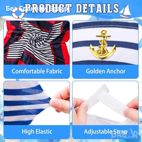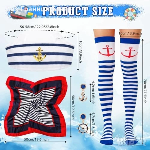 Нов Дамски моряшки комплект 4 части шапка капитан шал чорапи обеци