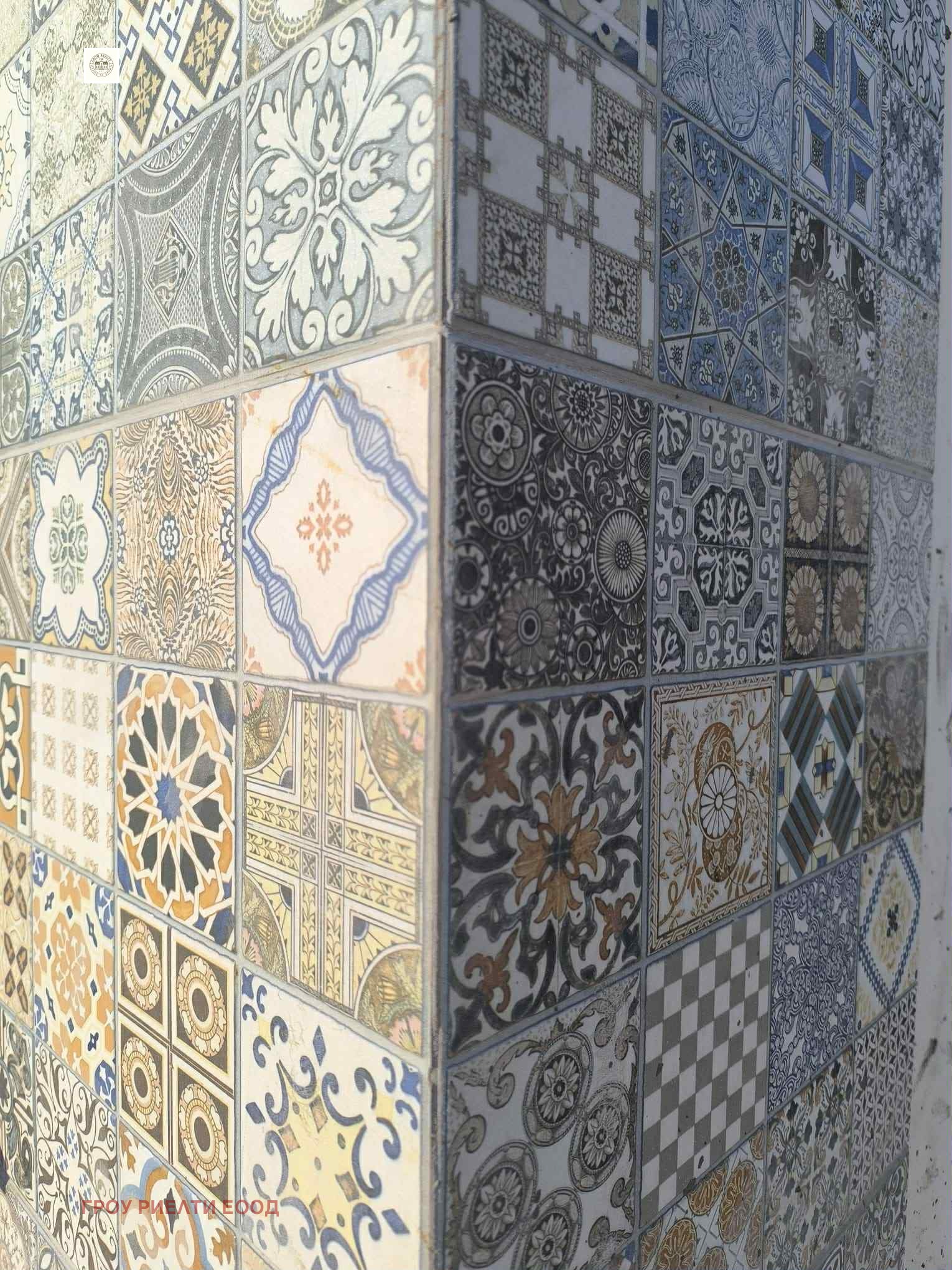 Долна част на фасада - естествен врачански камък и испански плочки