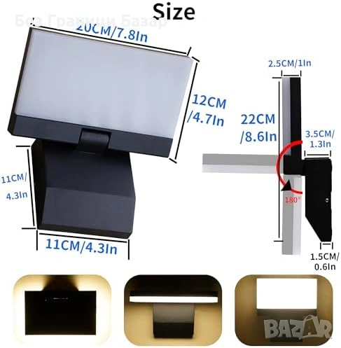 Нова 18W външна стенна лампа IP65 алуминий 3000K топла светлина гараж