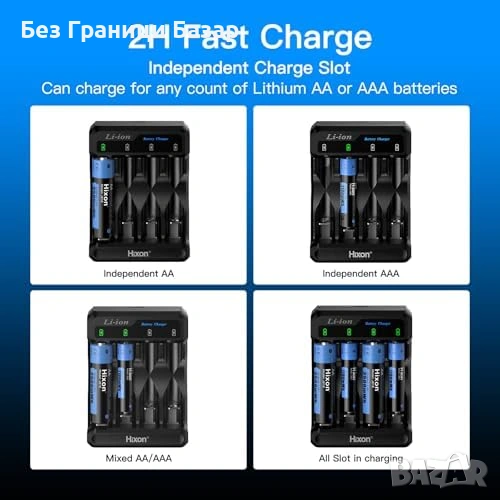 В комплекта: зарядно за AA/AAA, USB Type-C кабел, 2 кутии за съхранение на батерии