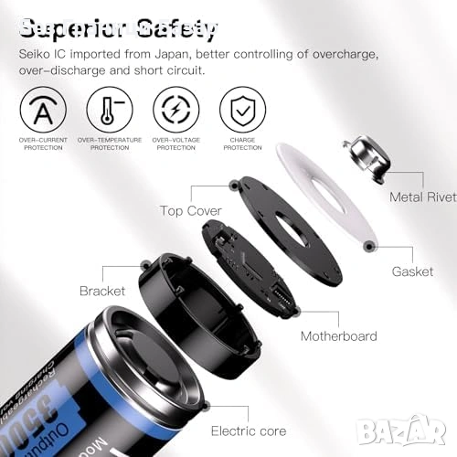 Комплект: 8× AA презареждаеми литиево-йонни батерии 1.5V (3500mWh) + зарядно