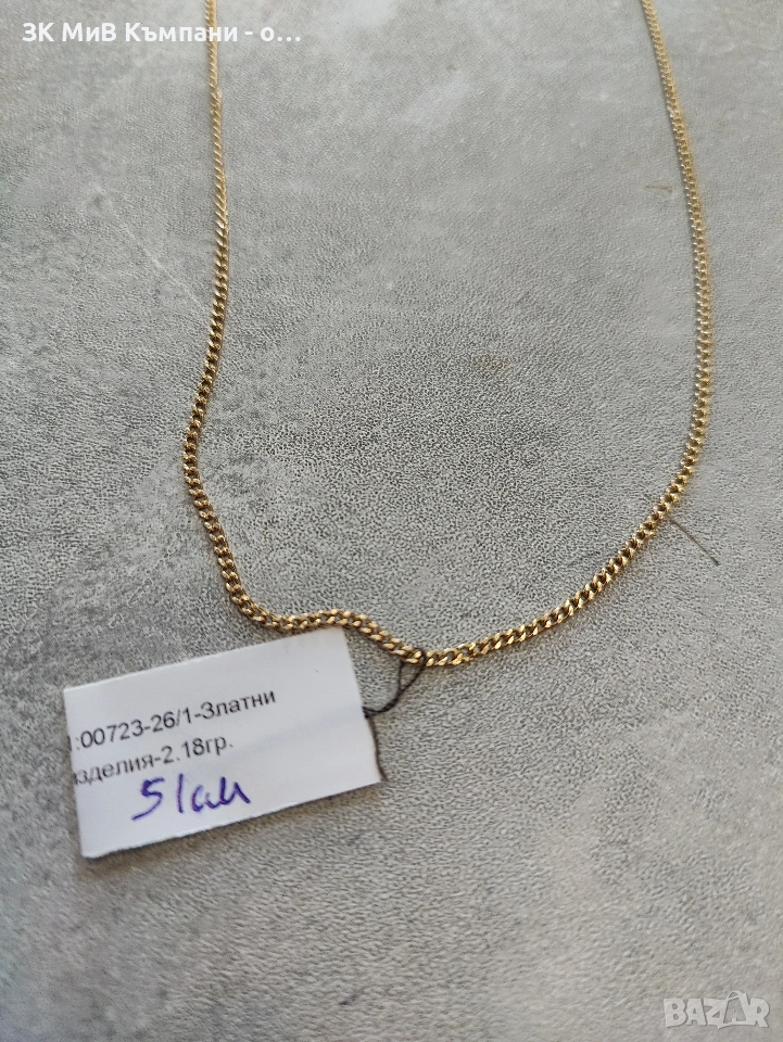 Златен синджир 2.18гр 14к 51см, снимка 1 - Колиета, медальони, синджири - 53680971 Златен синджир 2.18гр 14к 51см, снимка 2 - Колиета, медальони, синджири - 53680971 Златен синджир 2.18гр 14к 51см, снимка 3 - Колиета, медальони, синджири - 53680971 1/3