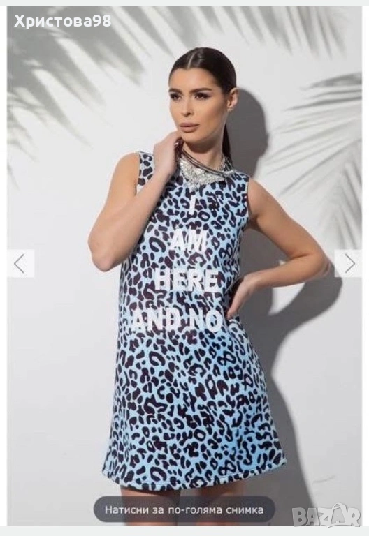 Продавам дамска рокля в синьо. Използвана е, но в добро състояние. Подходяща за различни поводи и събития.