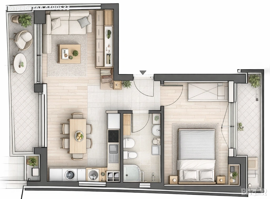 двустаен апартамент на последен етаж в малка бутикова сграда с ограничен брой