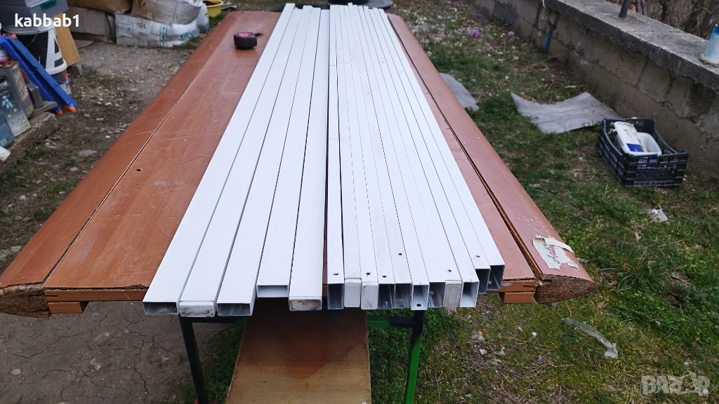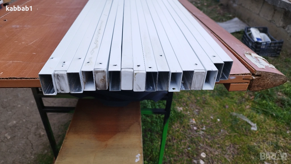 Продавам 16 броя алуминиеви профили / тръба/ 40х20х1 и дължина 190 - 205см . Профилите са бели, прахово фабрично боядисани - използвани са но са в добро състояние по една от тесните страни имат пробити 3-4 отвора. . Цената от 6€ e за брой.Обща цена за всички16бр е 85€.