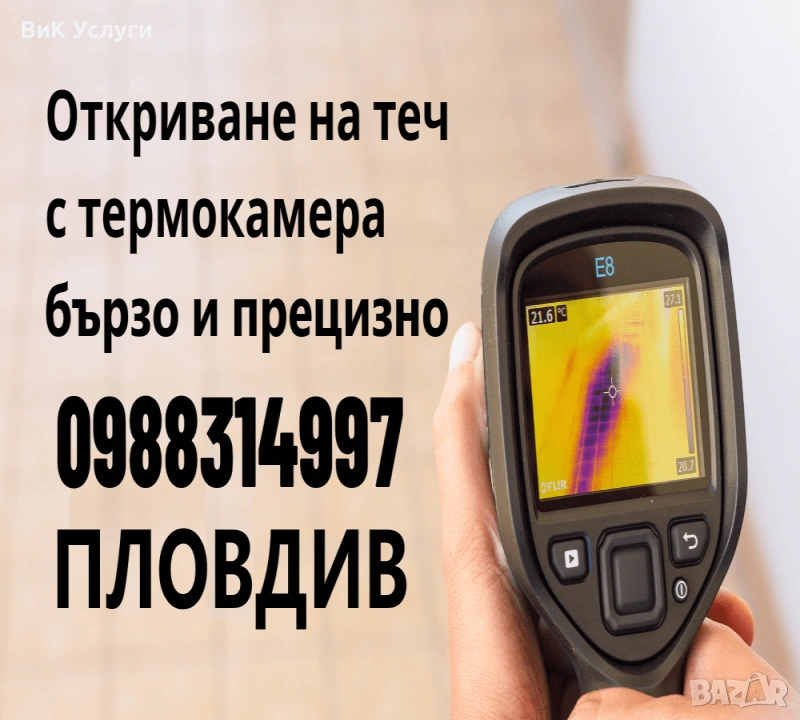 ТЕРМОКАМЕРА - Откриване на Скрити Течове в Баня, Стена, Тераса, Таван за Пловдив