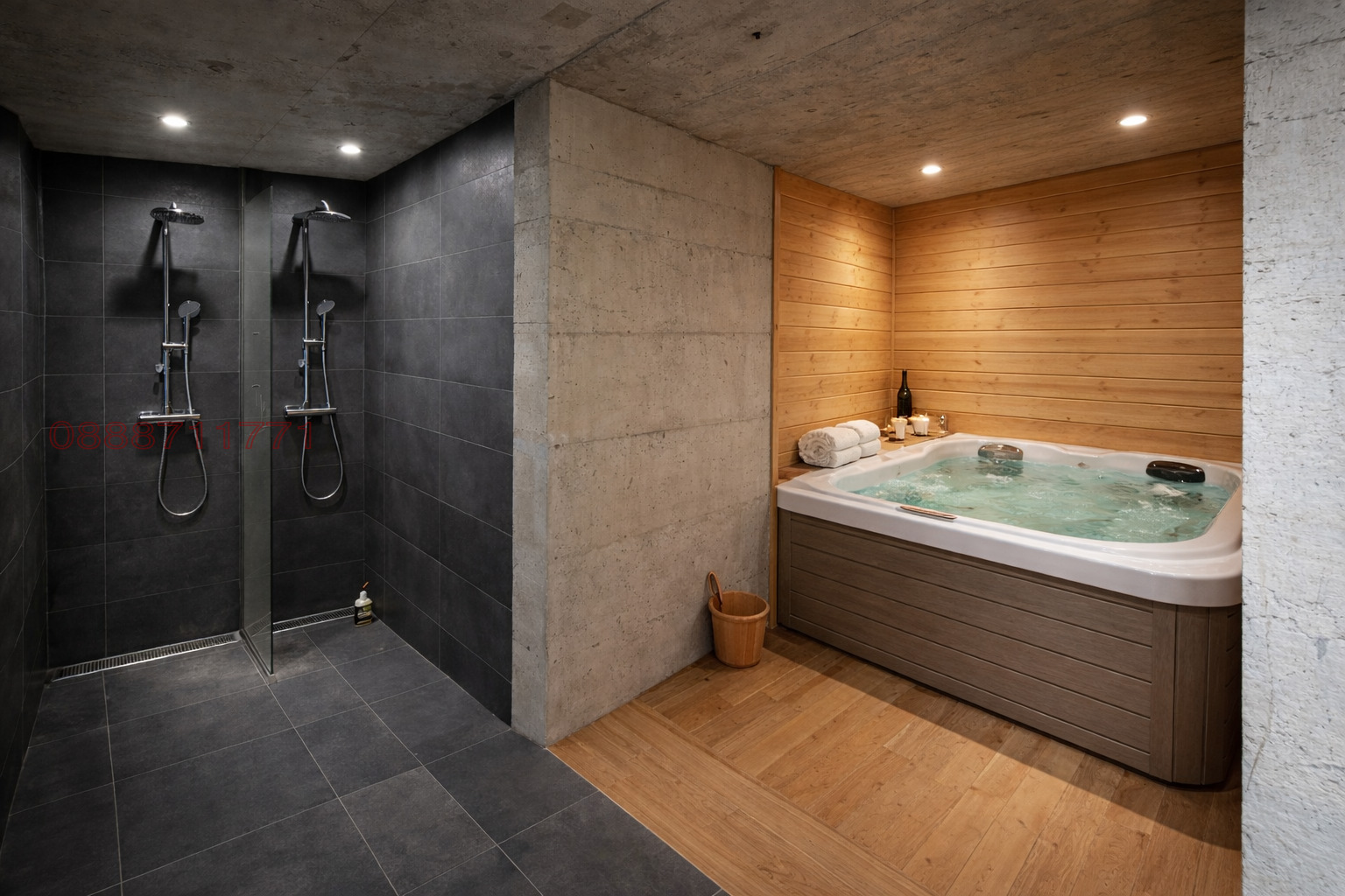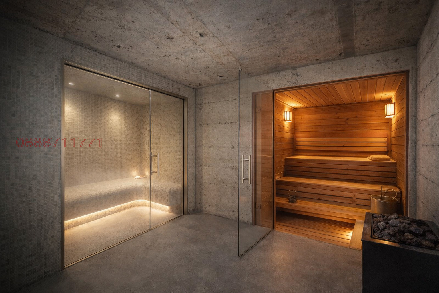 Подземното ниво (115 кв.м.) с височина 3,20 м., е създадено за релакс и