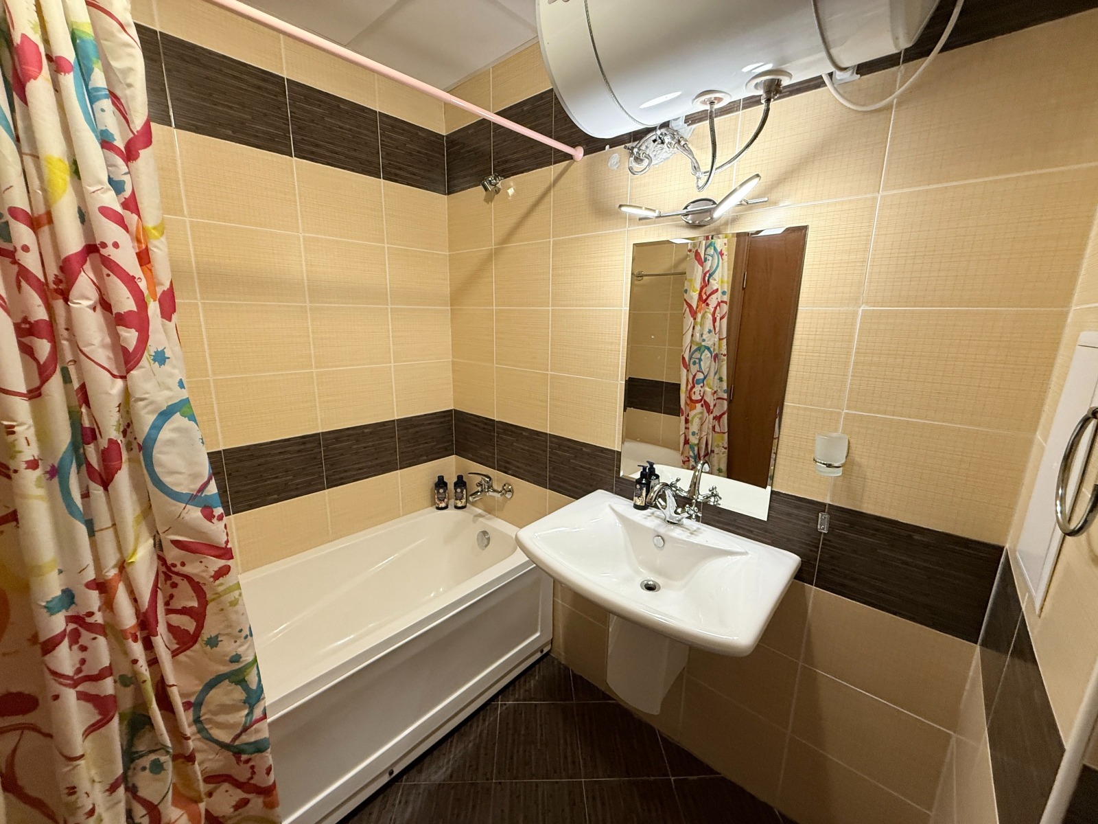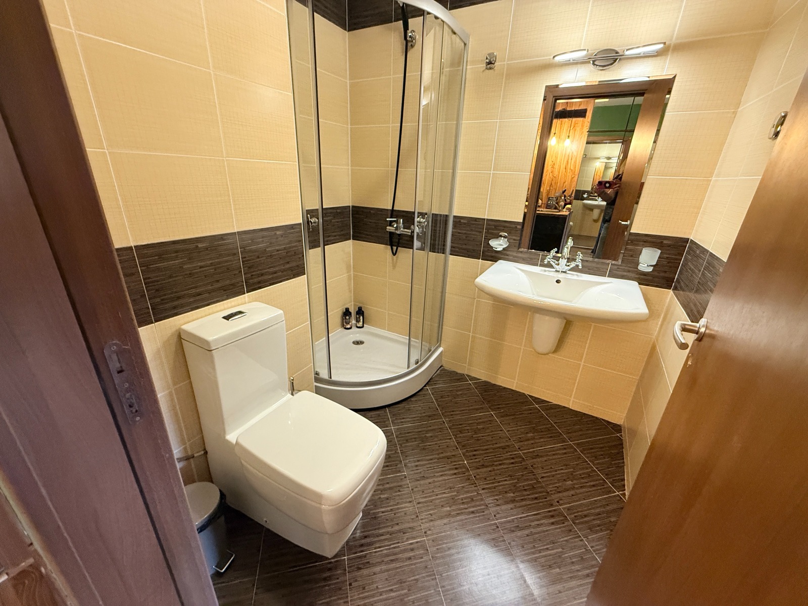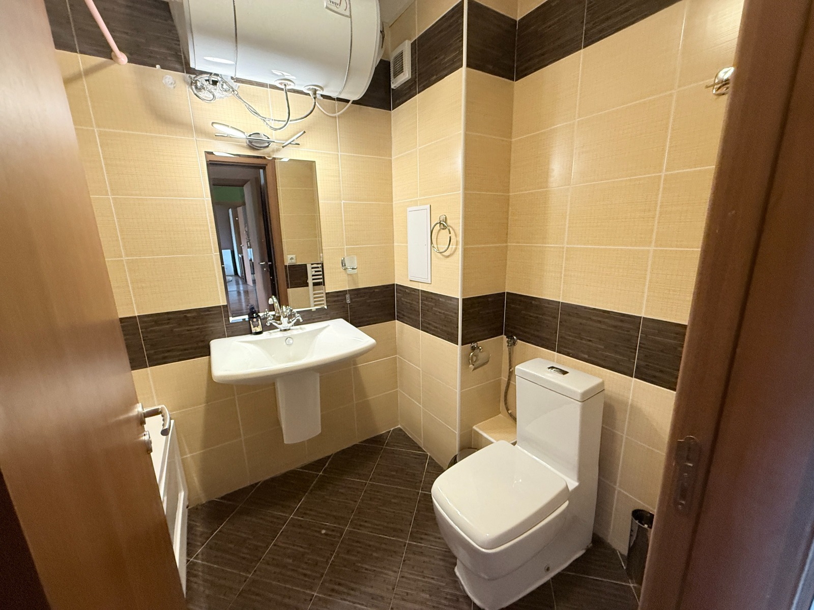 Апартаментът разполага с две стилни бани : едната самостоятелна с вана за допълнително уединение и релаксация, а втората баня е с модерна душ кабина , осигуряваща комфорт и функционалност.