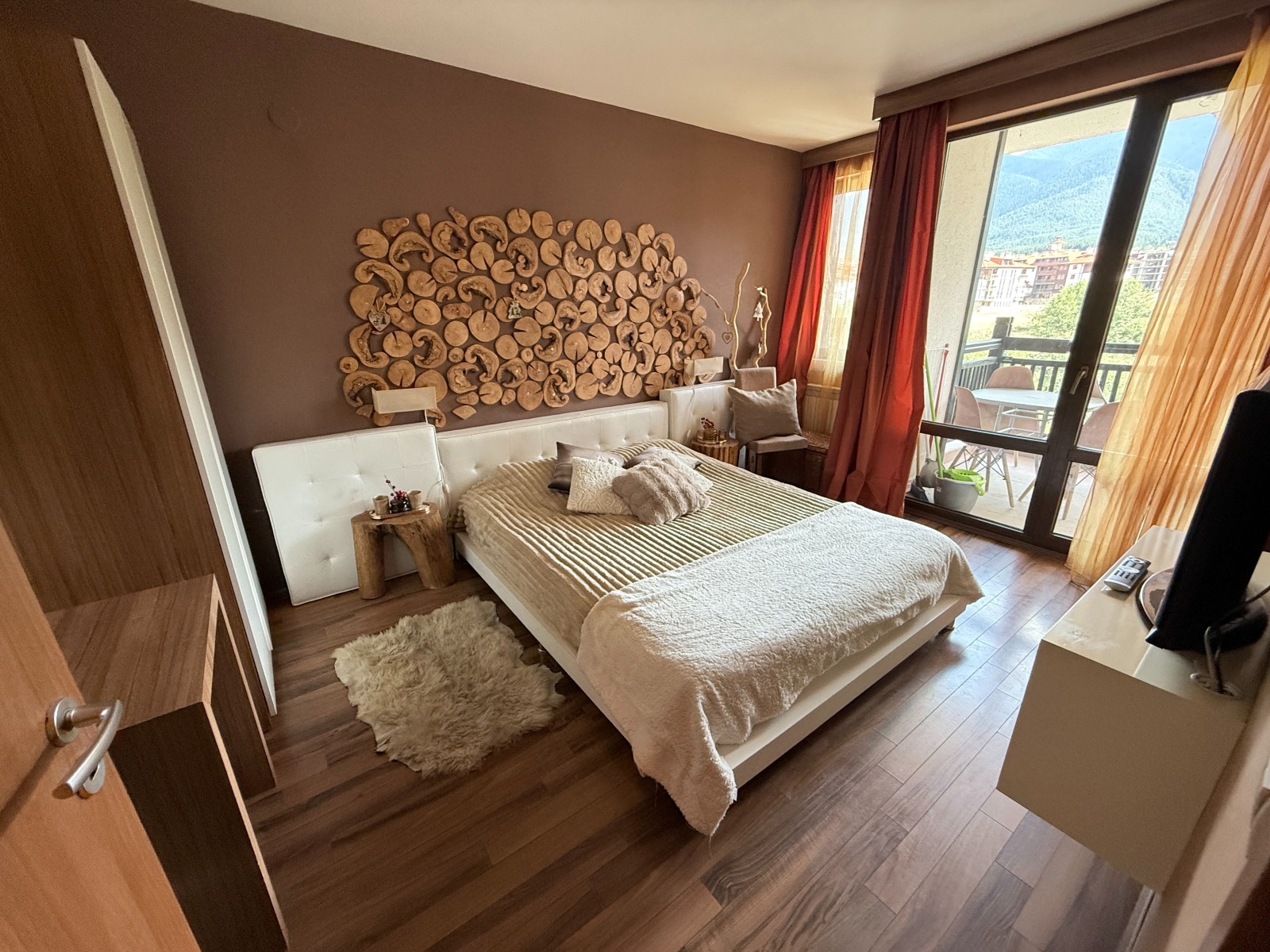 Този луксозен апартамент с две спални се намира на последния (4-ти) етаж на престижния ски и спа комплекс Сейнт Джордж . Имотът разполага с голям балкон с източно и южно изложение , достъпен както от хола, така и от едната спалня, предлагащ изобилие от естествена светлина и зашеметяваща гледка.