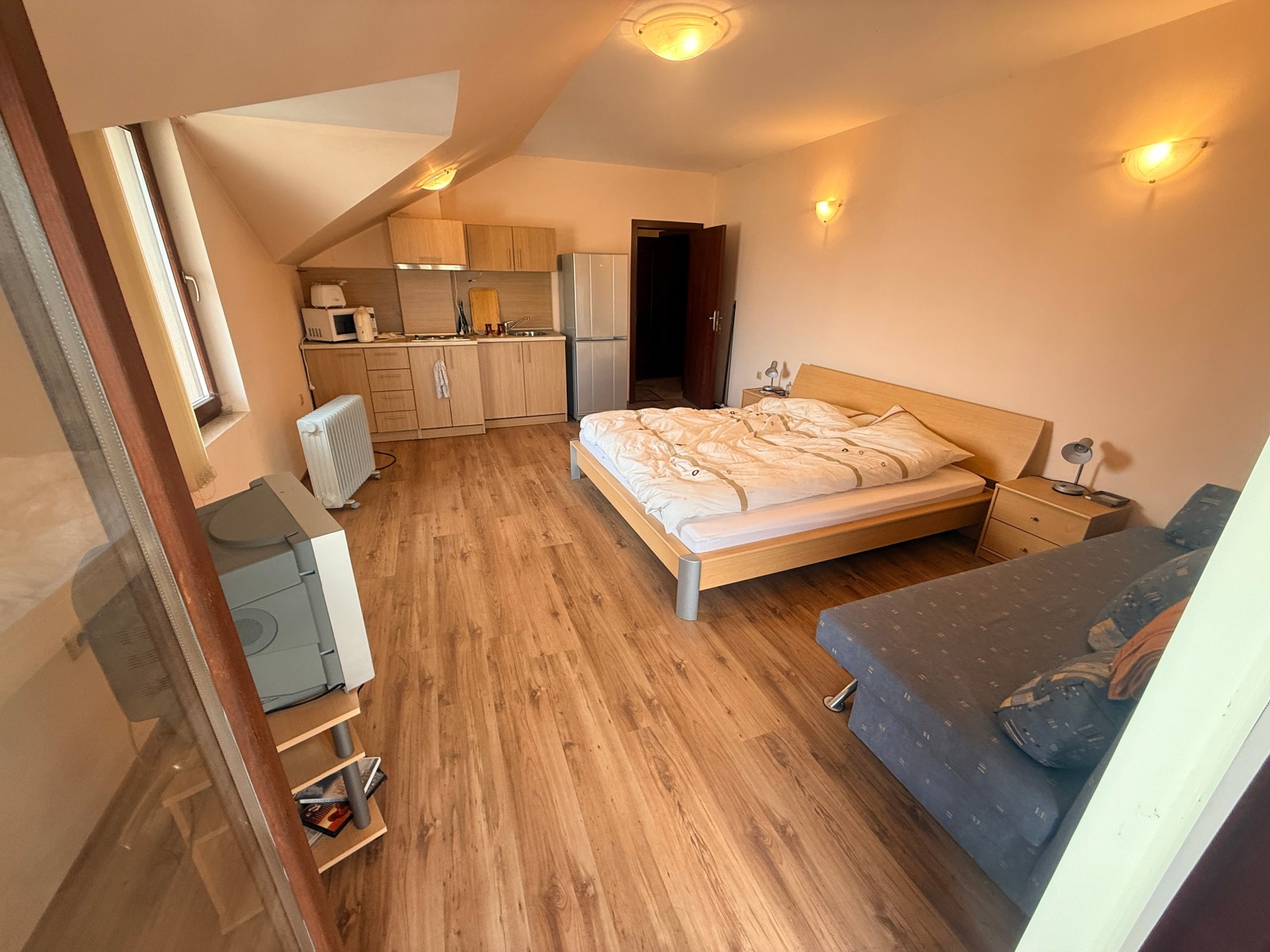 просторна и светла дневна с кухненски кът и обособена спална зона