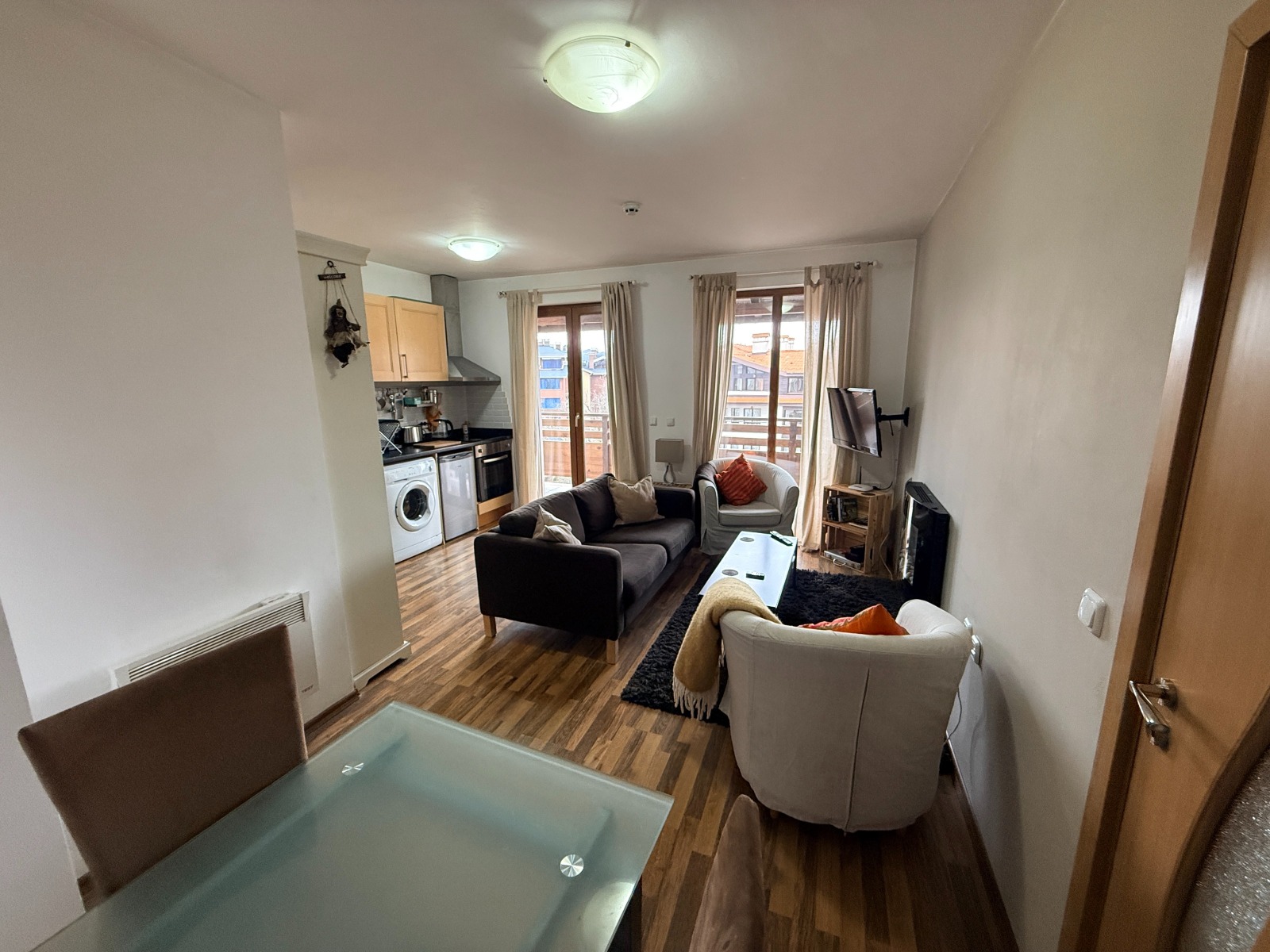 Балкон с изложение на север към Банско е достъпен от хола