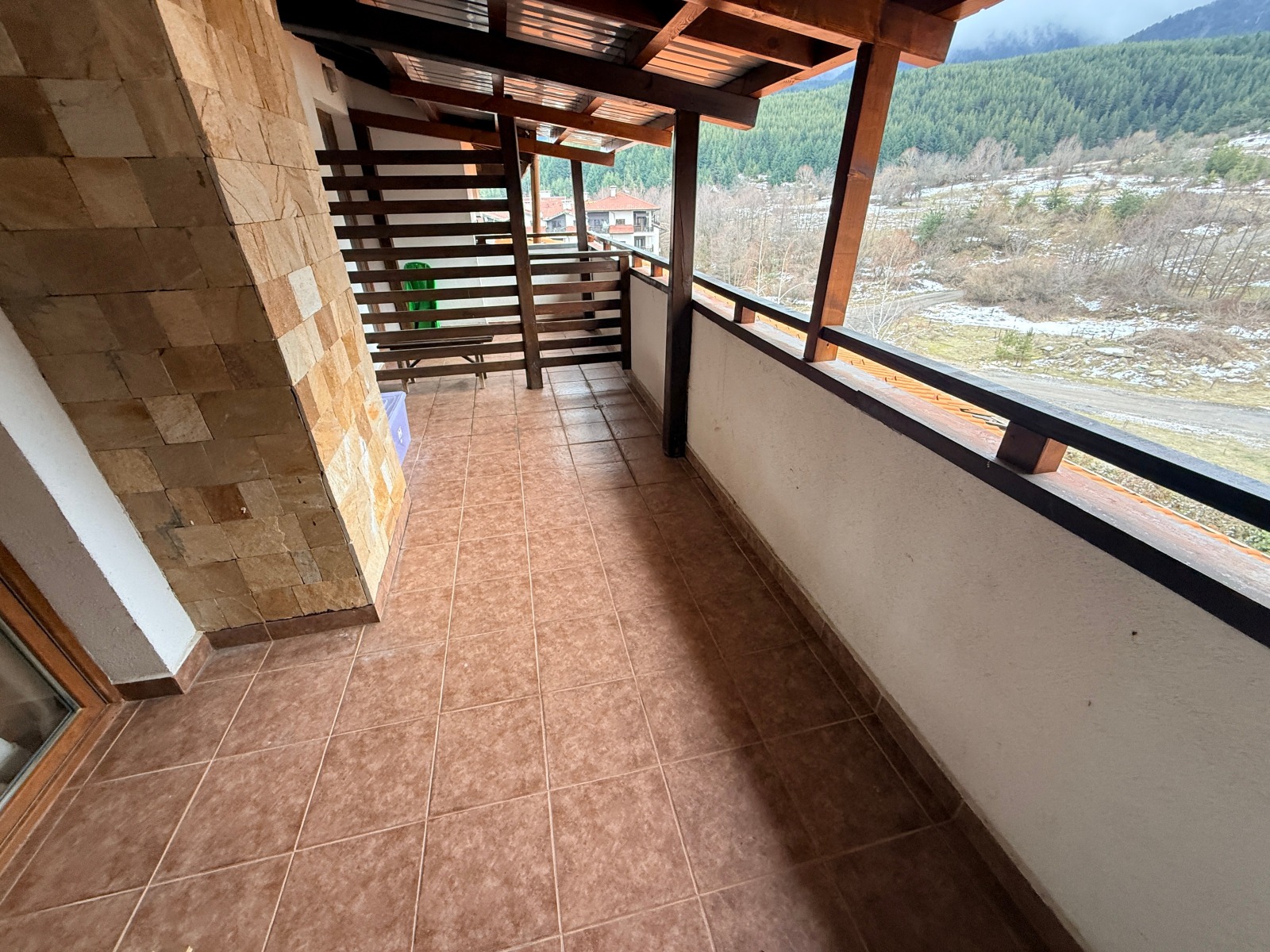 Балкон с северно изложение и гледка към Банско, с излаз от всекидневната