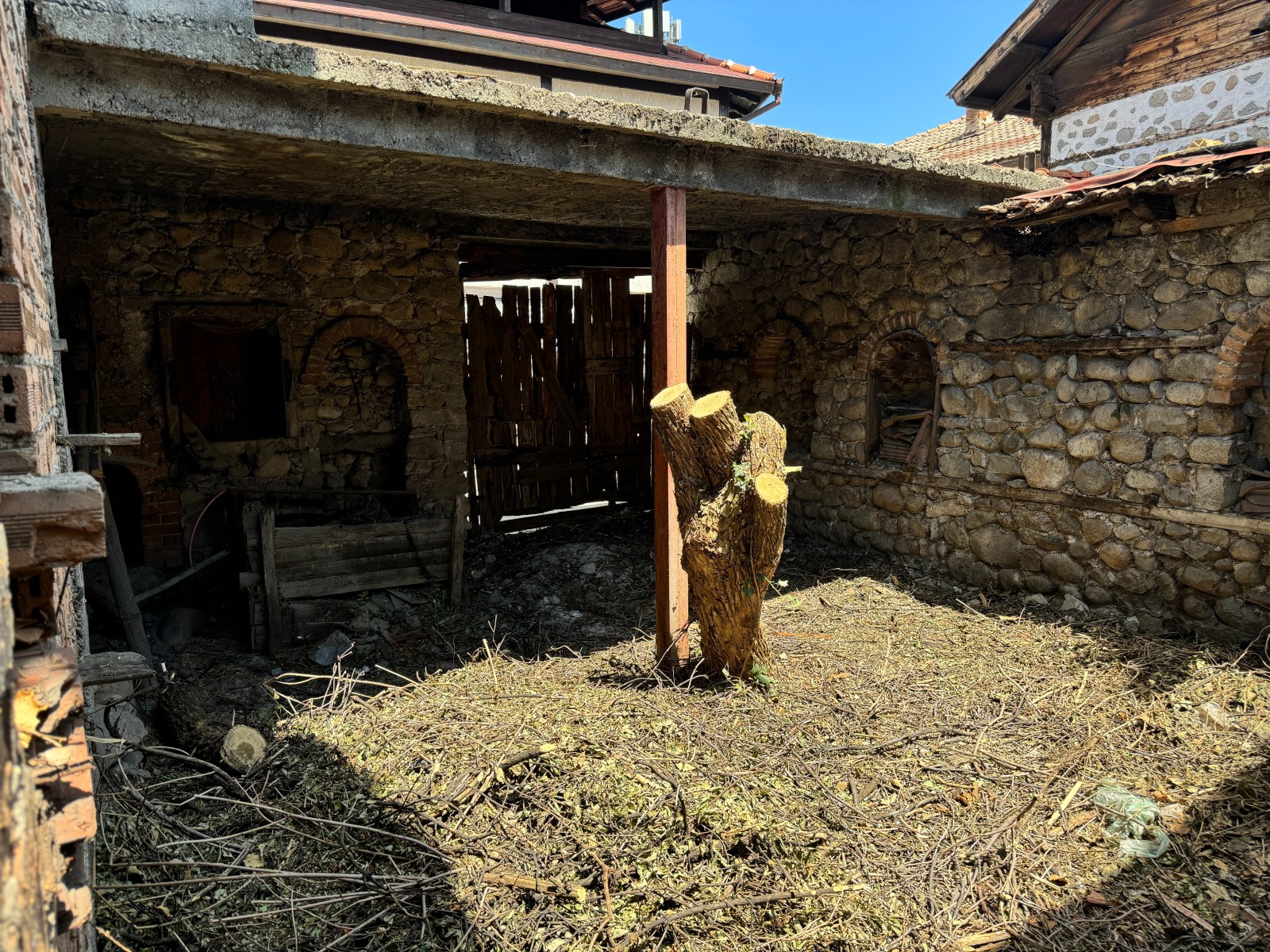 - Първи етаж: вход, в миналото е било албатница (магазин) и склад, около 80 кв м ; каменен зид 60 см