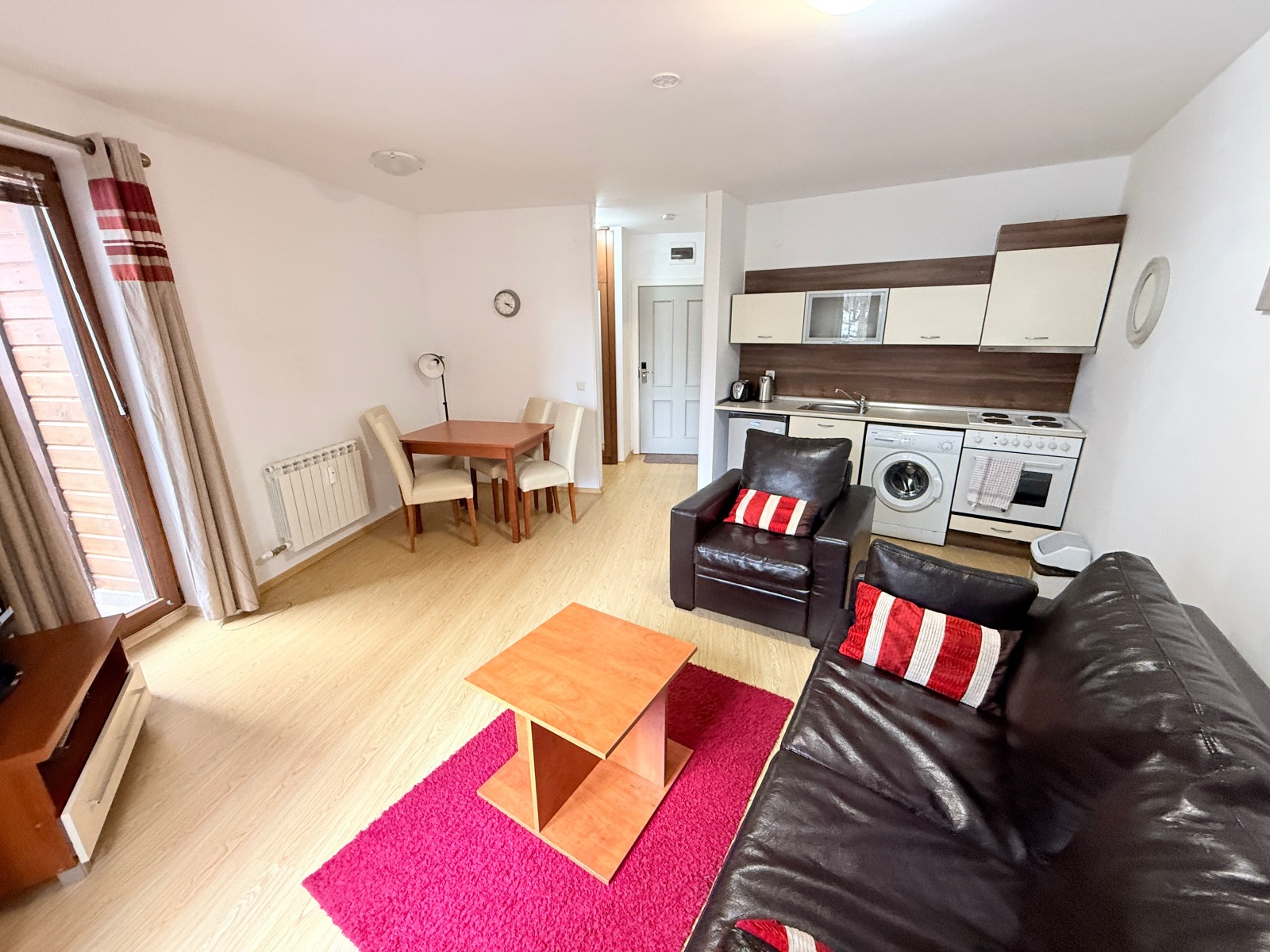 Двустаен апартамент, разположен на партерен етаж в утвърдения ваканционен комплекс Предела 2, Банско. Имотът е с изложение изток юг, което осигурява добра естествена светлина.