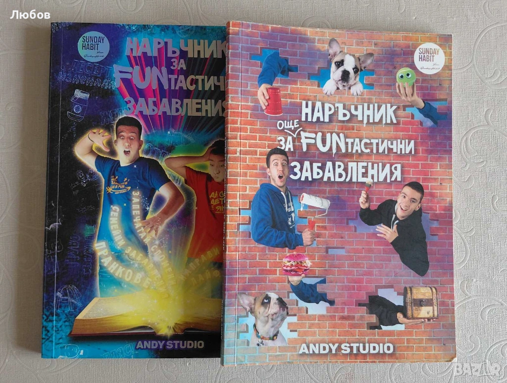 Книги на Andy studio - " Да си дете е яко" "Наръчник funтастични забавления " , Наръчник за още funтастични забавления" и " НЕбилдър ". Две от тях са с леки забележки, които са видни на снимките. Цена за брой - 6 евро, четирите заедно - 20 евро.