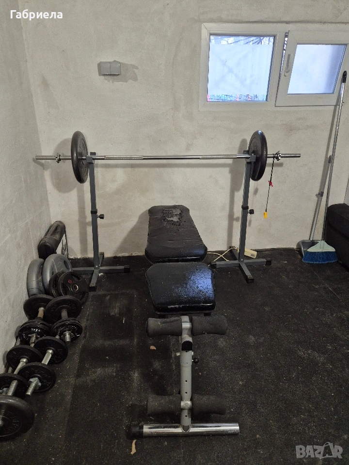 лежанка с тежести и всички включени тежести Малко използвана, но почти всичко е в добро състояние Само лежанката е надраскана В мазето ми е, така че трябва да се намери начин да я вземете и транспортирате