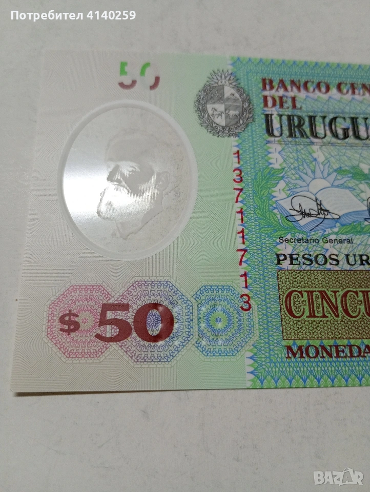 УРУГВАЙ БАНКНОТА 50 ПЕСО 2020 Г ПОЛИМЕРНА КОЛЕКЦИОНЕРСКА СЪСТОЯНИЕ НОВО ПОЛУЧАВАТЕ СНИМАНАТА БАНКНОТА РАЗГЛЕДАЙТЕ ДРУГИТЕ МИ ОБЯВИ ДА КОМБИНИРАТЕ ДОСТАВКА ЕКОНТ ЗА ВАРНА ЛИЧНО