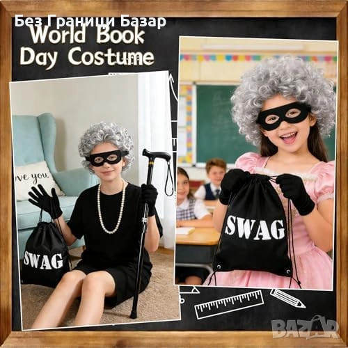 Пълен детски костюмен комплект „гангстер баба“ за World Book Day 2026 и тематични партита