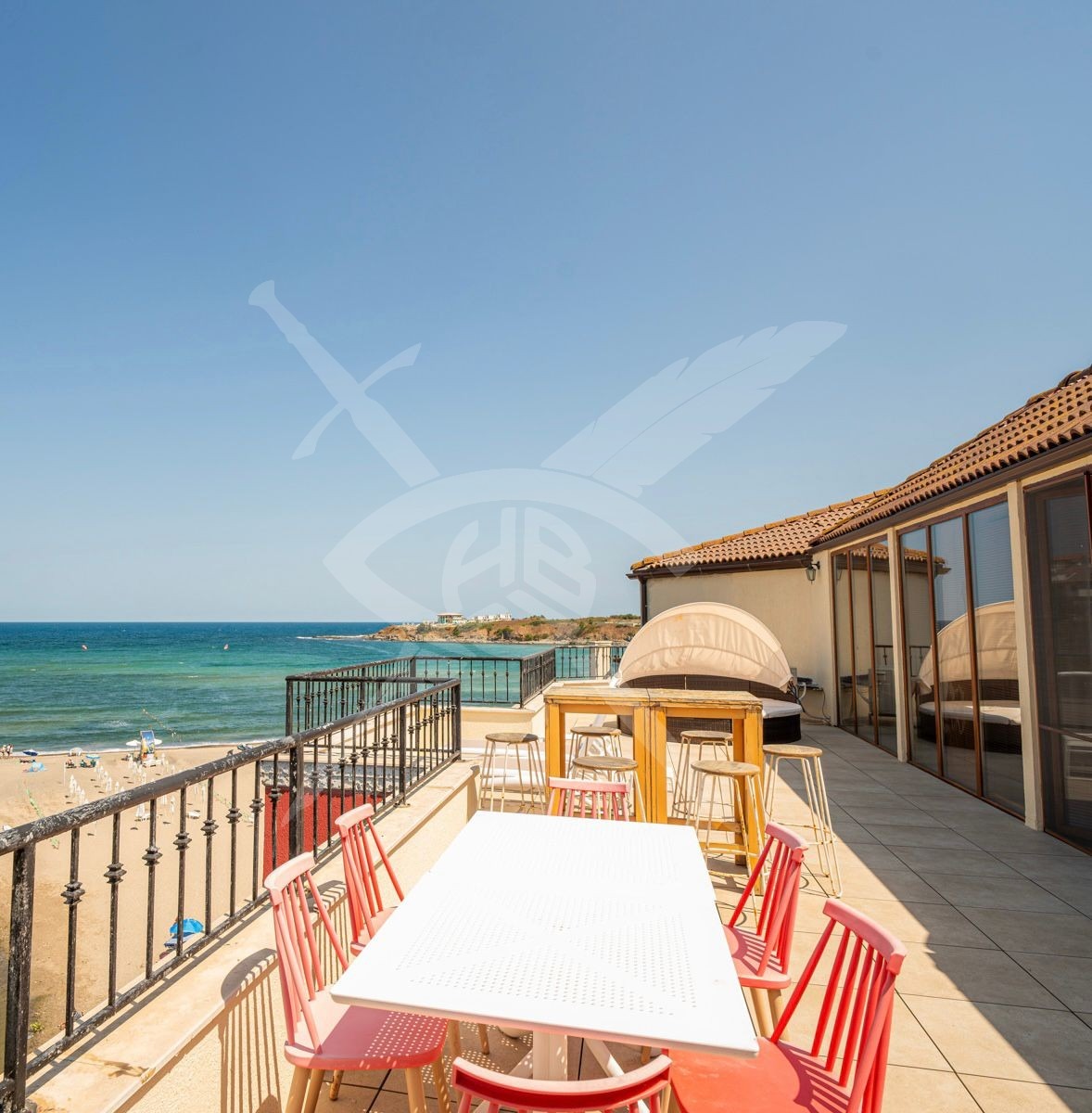 РАЗПРЕДЕЛЕНИЕ: Апартаментът разполага с площ от 263 кв.м, функционално разпределен на две нива, първо ниво е разпределено в три спални, баня с тоалетна, втора самостоятелна тоалетна, мокро помещение и тераса; второ ниво е разпределено в просторна всекидневна с кухненски бокс и тераса с гледка море.