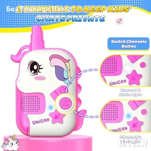 Нови Презареждаеми детски уоки-токита Еднорог 3-8г Ясен звук до 300м