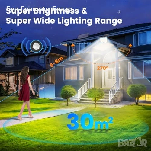 Соларна стенна лампа за охрана с 288 LED и широко покритие за по-малко тъмни зони около дома