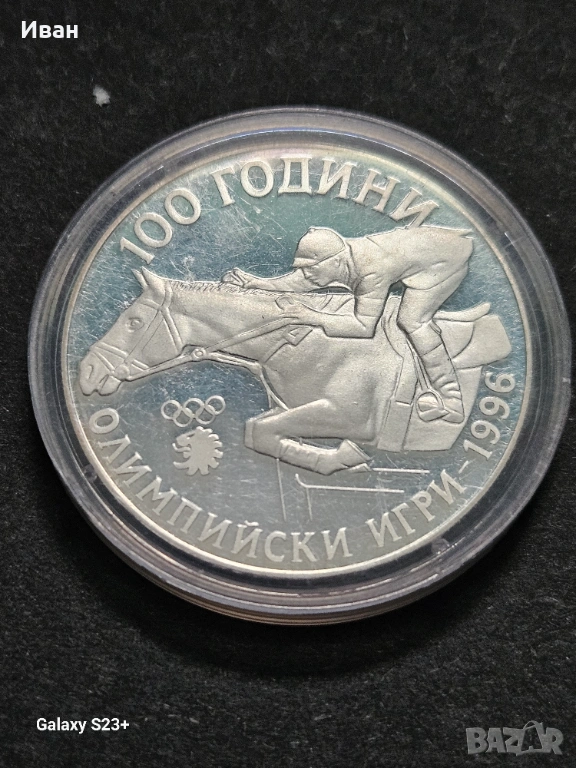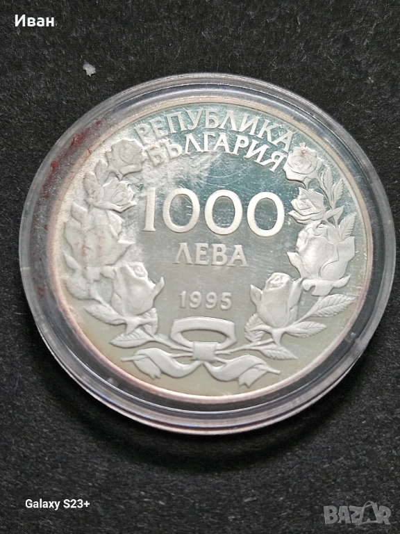 Продавам сребърна монета 1000 лева от 1995 година,100 години олимпийски игри. → Обява 53682269