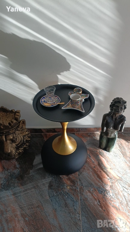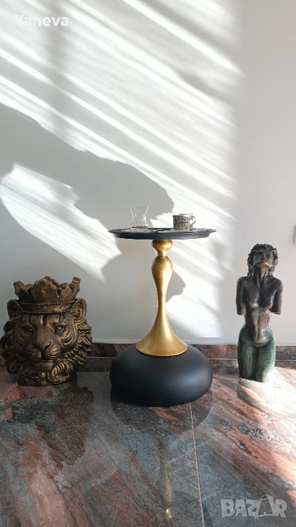 Метална , помощна маса в златисто и черно. Нова. Размер 53/35 см. Цена 50 €