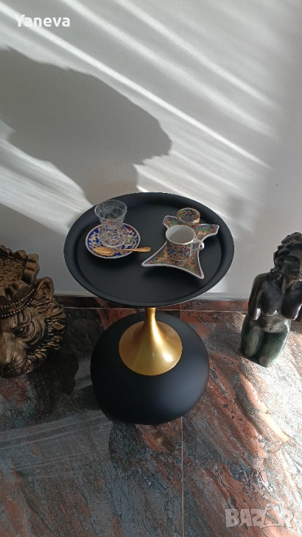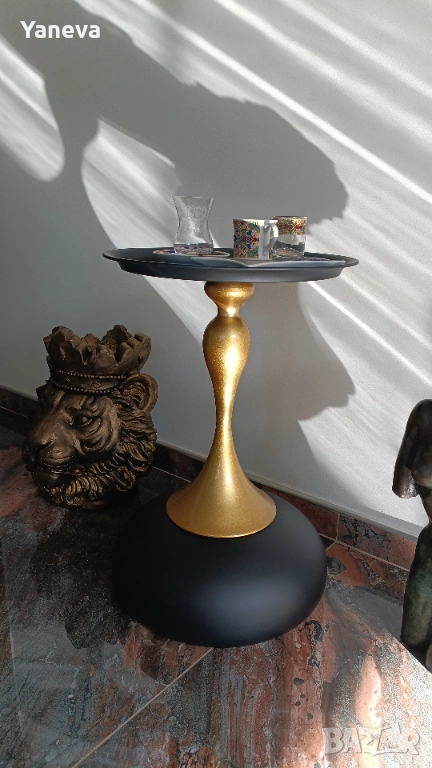 Метална , помощна маса в златисто и черно. → Обява 53682419