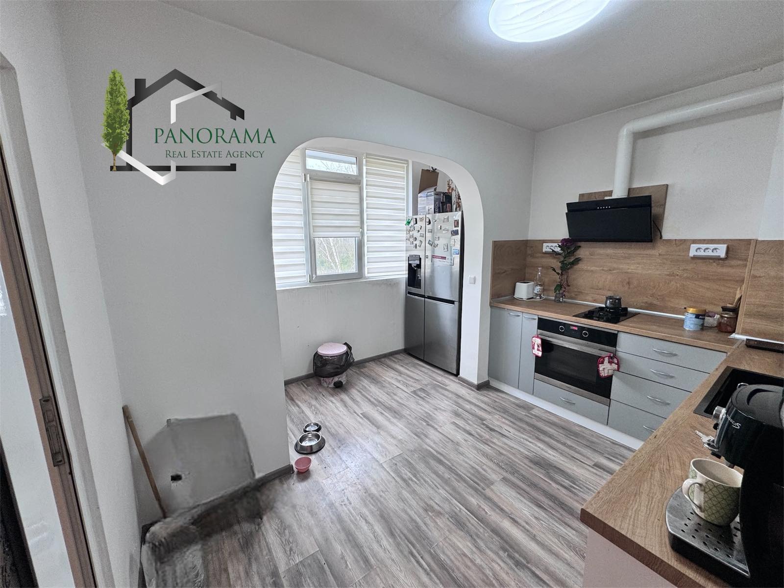 Просторен апартамент с площ от 110 кв.м., разположен на ЧЕТВЪРТИ етаж, в осем етажна жилищна сграда. Имота се състои от кухня с усвоена тераса просторна и удобна за готвене и семейни вечери, всекидневна с усвоена тераса светла и комфортна, подходяща за отдих и забавления, три спални, като едната има собствена тераса с прекрасен изглед, Т-образен коридор, който осигурява лесен достъп до всички помещения, два санитарни възела удобство за голямо семейство. Маза към имота с площ от 5 кв.м.. Апартаментът е подходящ за голямо семейство или за инвестиция, с възможност за съвременна реконструкция и осъвременяване.