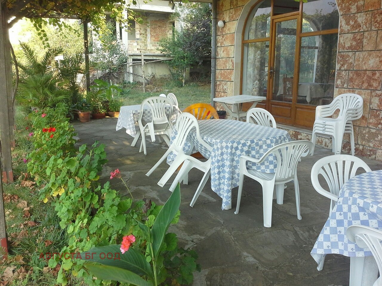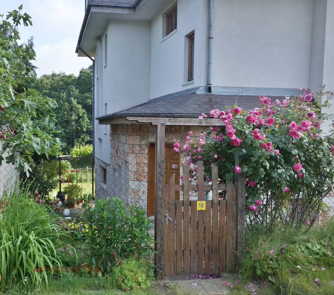 Дворът е озеленен с плодни дръвчета, което създава приятна и уютна атмосфера.