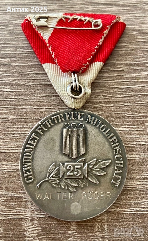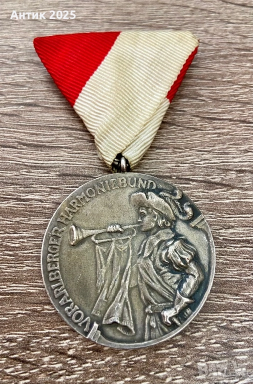 Продавам отлично запазено австрийско отличие от провинция Форарлберг (Vorarlberger Harmoniebund). Медалът е връчен за 25-годишно активно членство в музикалния съюз и е изключително ценен заради своята автентичност и състояние.