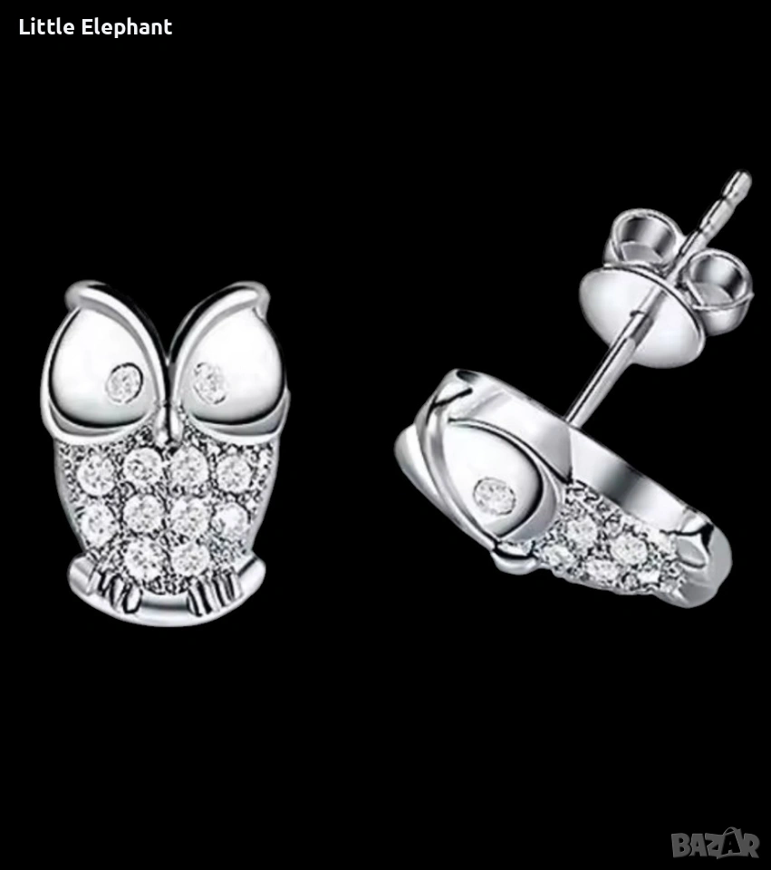 Pre order 🦉 Сребърни обеци "Сияйна Сова" с цирконии/нови → Обява 53683511
