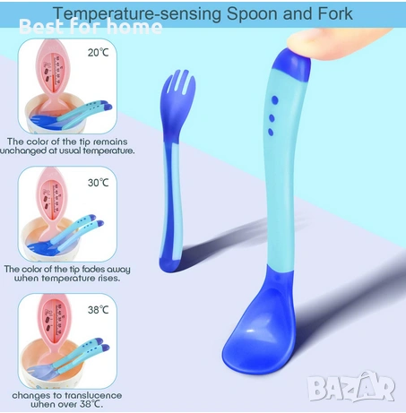 【Прибори за хранене с температурен сензор】Подготвихме също лъжица и вилица с температурен сензор. Ако температурата на храната е по-висока от 38 градуса, лъжицата и вилицата ще променят цвета си, така че бебето да яде храна при по-подходяща температура.