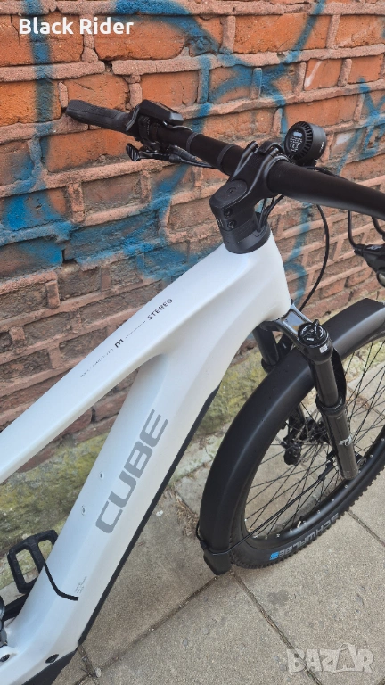 Оригинална окомплектовка и монтаж - ниво на оборудване EXC: Окачване въздушна вилка Fox 36 Float AWL 140 мм. ход отпред и Fox Float Rhythm RC отзад, ефективни хидравлични спирачки SHIMANO DEORE XT с 203 мм. дискове, монтаж на SHIMANO DEORE XT 1x12 скорости, с команда Shimano SLX Rapid Fire, дропер с команда от кормилото, ергономична седалка CUBE Natural Fit, фар и активен стоп захранени от батерията, широки калници и стойка за дисаги и др..
