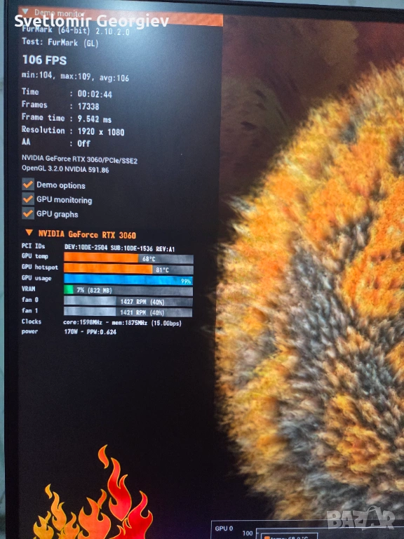 Компютърът работи тихо и стабилно. Почистен и готов за тест. Подходящ за игри като Warzone, GTA V, Fortnite, CS2 и други.